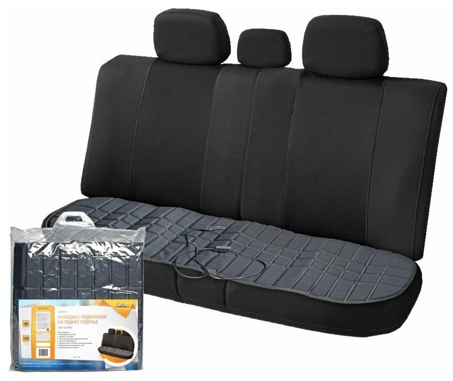 Применяется для дополнительного обогрева водителя и пассажиров при пониженых температурах. Представляет собой накидку на сиденье из полиэстера с нагревательным элементом. Питание от бортовой сети 12V через гнездо прикуривателя.Накидка оснащена пультом для регулировки нагрева. Накидка с подогревом предназначена для установки на задний ряд сидений автомобиля. Она имеет прямоугольную продолговатую форму, а также универсальный размер, который позволяет использовать изделие в салоне любого авто. Изделие имеет особую противоскользящую поверхность, а также массажный рельеф на внешней стороне накидки. Система регулировки нагрева позволяет настраивать необходимую мощность температуры с максимальным порогом +45C. Для безопасности использования накидки оснащены термистром , который отключает накидку при нагреве +65С. Преимущества:-работает от бортовой сети 12V,-мощность 35/45Вт,-легко устанавливается,-экологичный и износоустойчивый материал,-максимальная температура нагрева +45C,-универсальное крепление,-пульт регулировки нагрева (три положения).