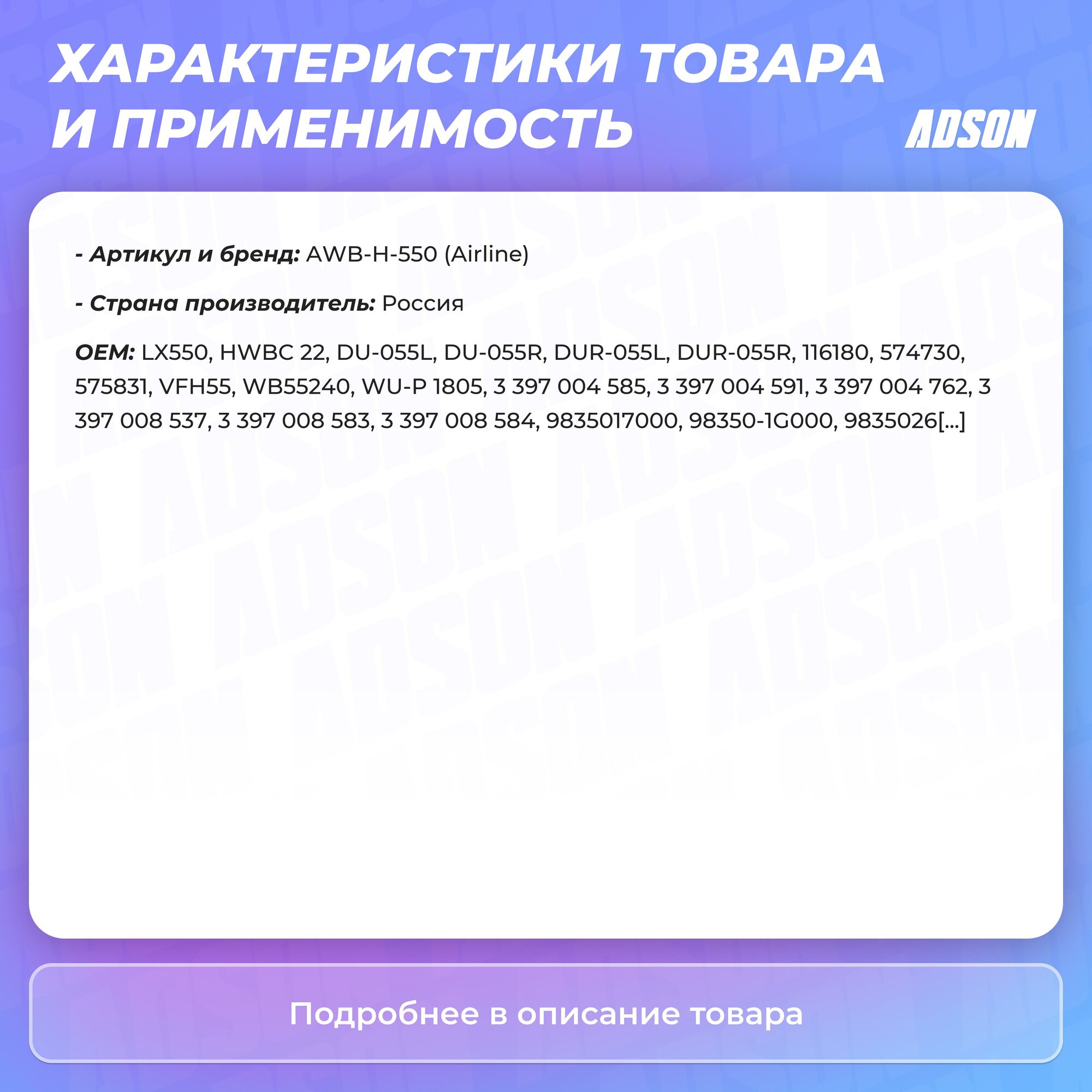 | Артикул | AWB-H-550 |