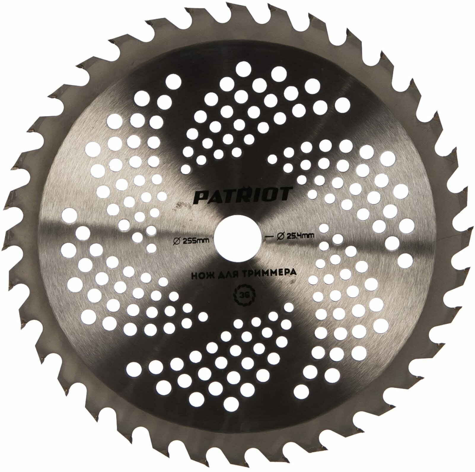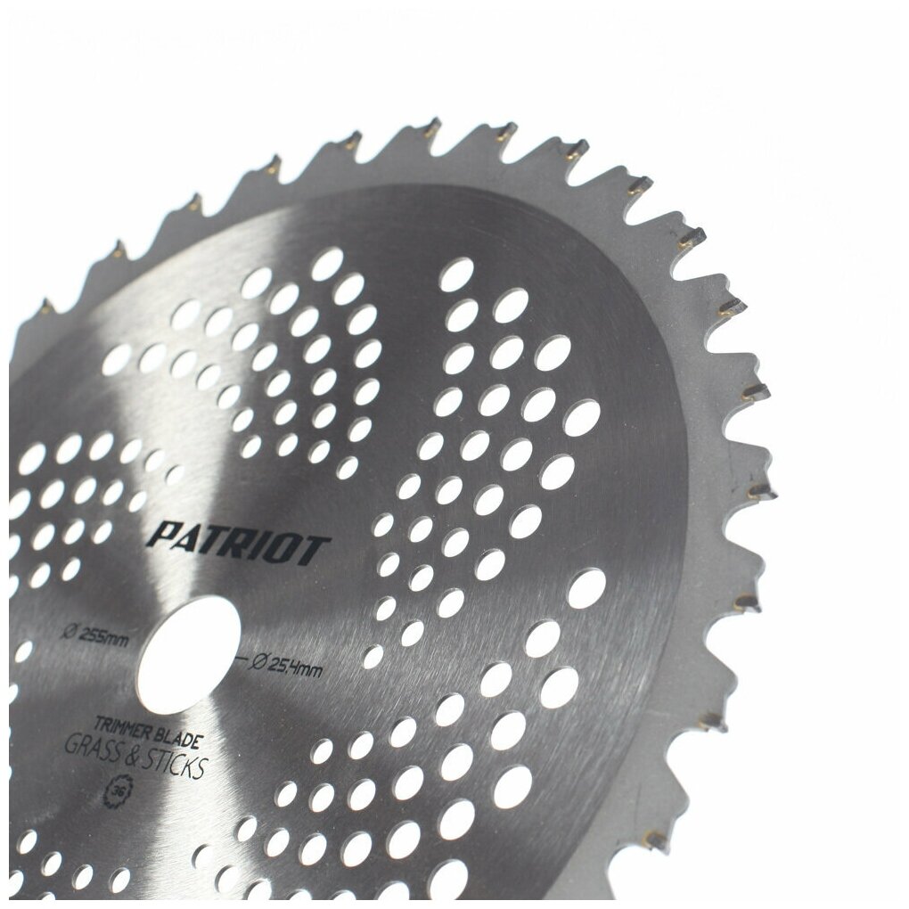 Профессиональный пильный диск для триммера с твердосплавными зубцами. Внешний диаметр 255мм, посадочный диаметр 25.4мм, 36 зубьев. Специальная форма зуба, снижающая отдачу и вибрацию. Упаковка в термоусадочной пленке на картонной подложке