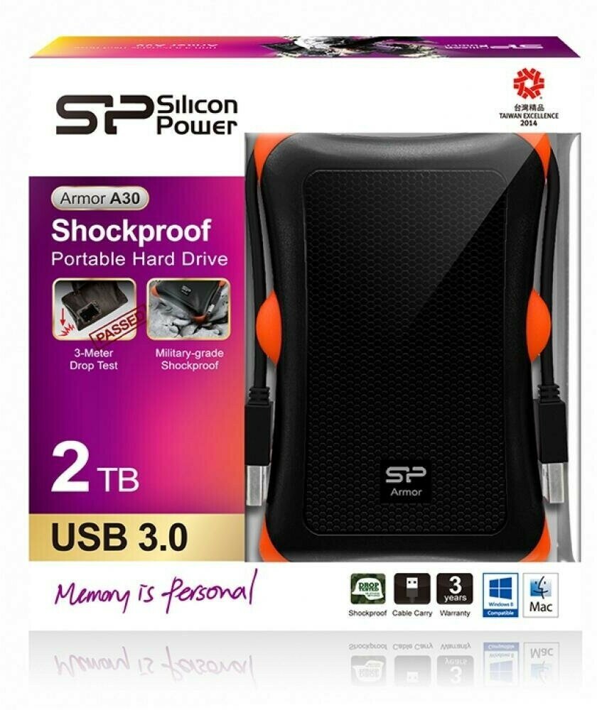 Внешний HDD Silicon Power Armor A30 станет надежным хранилищем для всех важных для вас данных, которое при этом всегда будет у вас под рукой. Модель, представленная в форм-факторе 2.5", обладает компактными габаритами, благодаря чему ей можно легко выделить место в любом рюкзаке или сумке для ноутбука, чтобы она сопровождала вас в любой поездке.