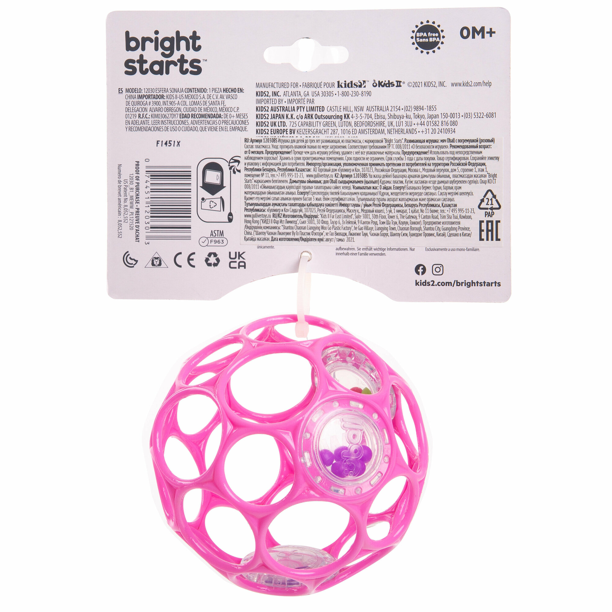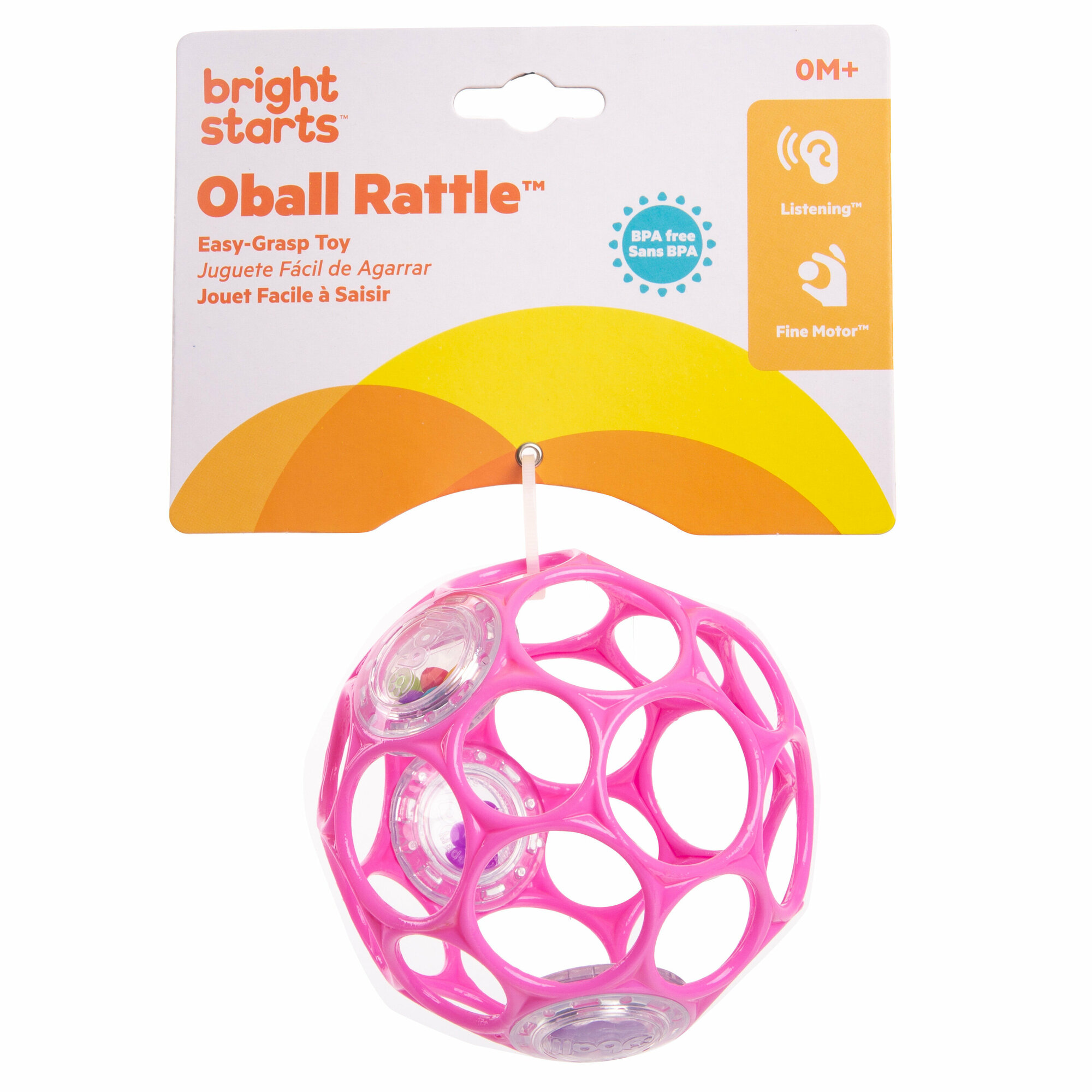Легкая и прочная погремушка Oball от Bright Starts! Разработанная так, чтобы ее было легко схватить даже самым маленьким пальчикам, эта детская игрушка способствует развитию мелкой моторики при каждом встряхивании. Всего имеется 29 отверстий для пальцев, так что даже неопытные пальчики смогут крепко держаться и трясти изо всех сил! Вашему малышу понравится наблюдать за тем, как яркие бусинки внутри каждой погремушки сверкают и щелкают при каждом покачивании и тряске.