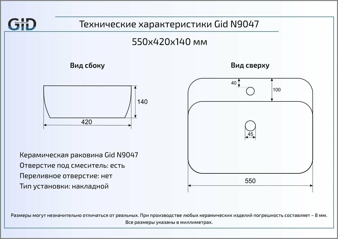 Раковина Gid N9047