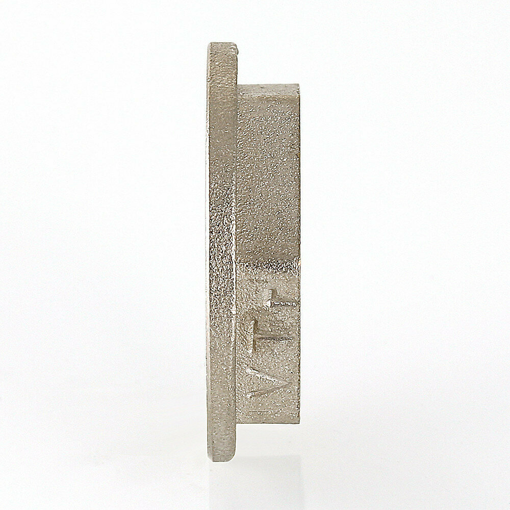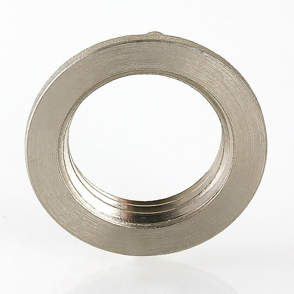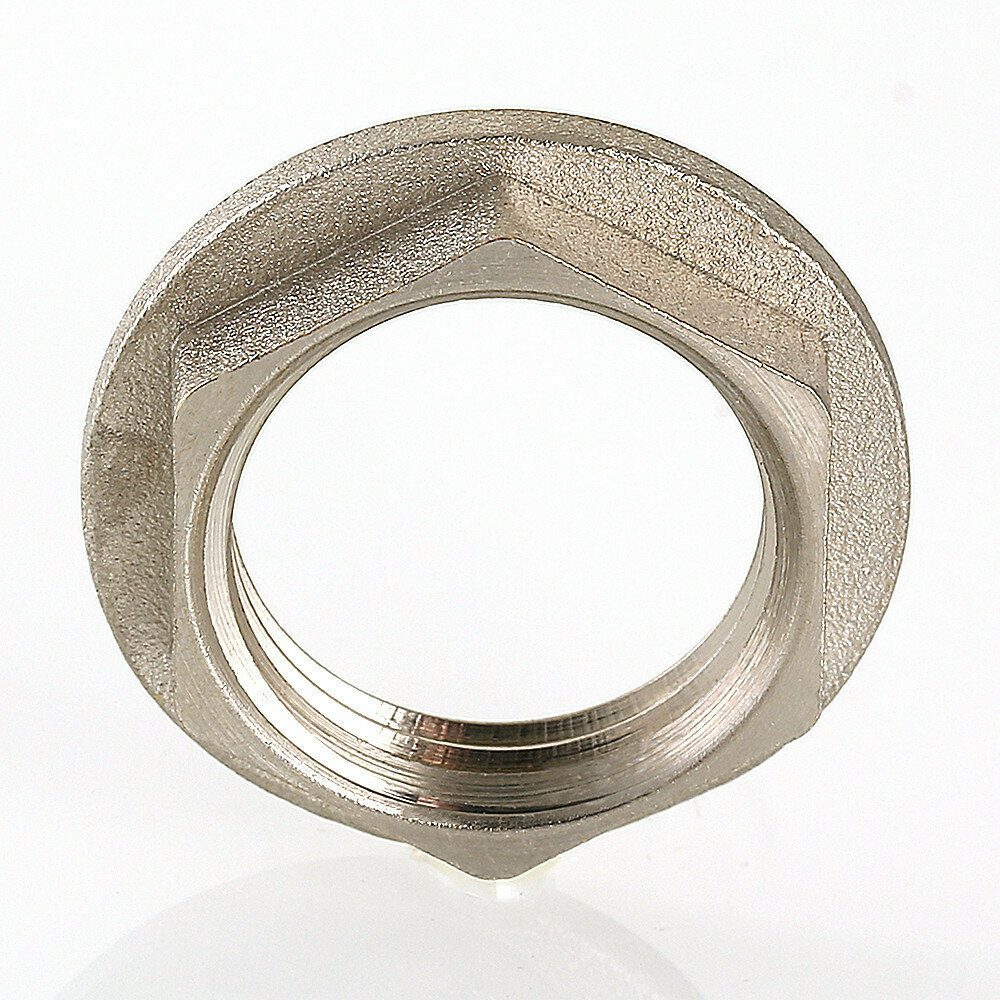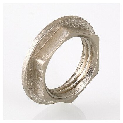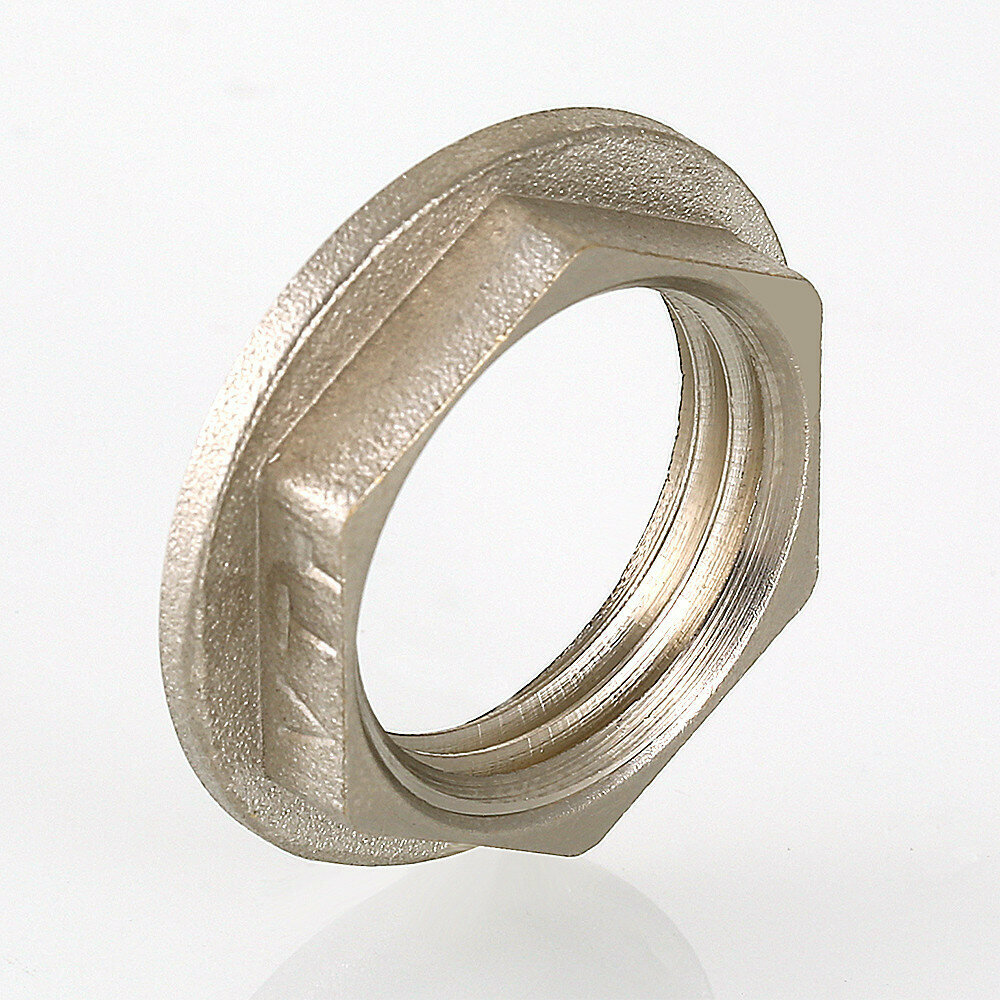 (VTr.655. N) Контргайка – простой и эффективный вид гаечных замков, предназначенных для недопущения самопроизвольного раскручивания элементов резьбовых соединений (муфт, сгонов, пр.) при вибрации, гидравлических ударах. Реборда, выступающая за шестигранную часть гайки, увеличивает надежность фиксации, повышает герметичность, улучшает внешний вид соединения (скрывает волокна уплотнителя). Как и другие резьбовые фитинги VALTEC, контргайка с ребордой выполнена методом горячего штампования из латуни CW617N с последующим никелированием, имеет трубную цилиндрическую резьбу, совместимую с конической.