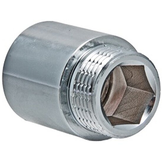 Латунный резьбовой удлинитель (1" вн. х50мм) с корпусом круглого сечения. Благодаря хромовому покрытию хорошо сочетается с хромированными сантехническими изделиями (полотенцесушители, смесители и т.д.). Резьба – внутренняя/наружная, цилиндрическая трубная по ГОСТу 6357 (ISO 228, EN 10226), совместимая также с наружной конической трубной резьбой по ГОСТу 6211 (ISO R7).