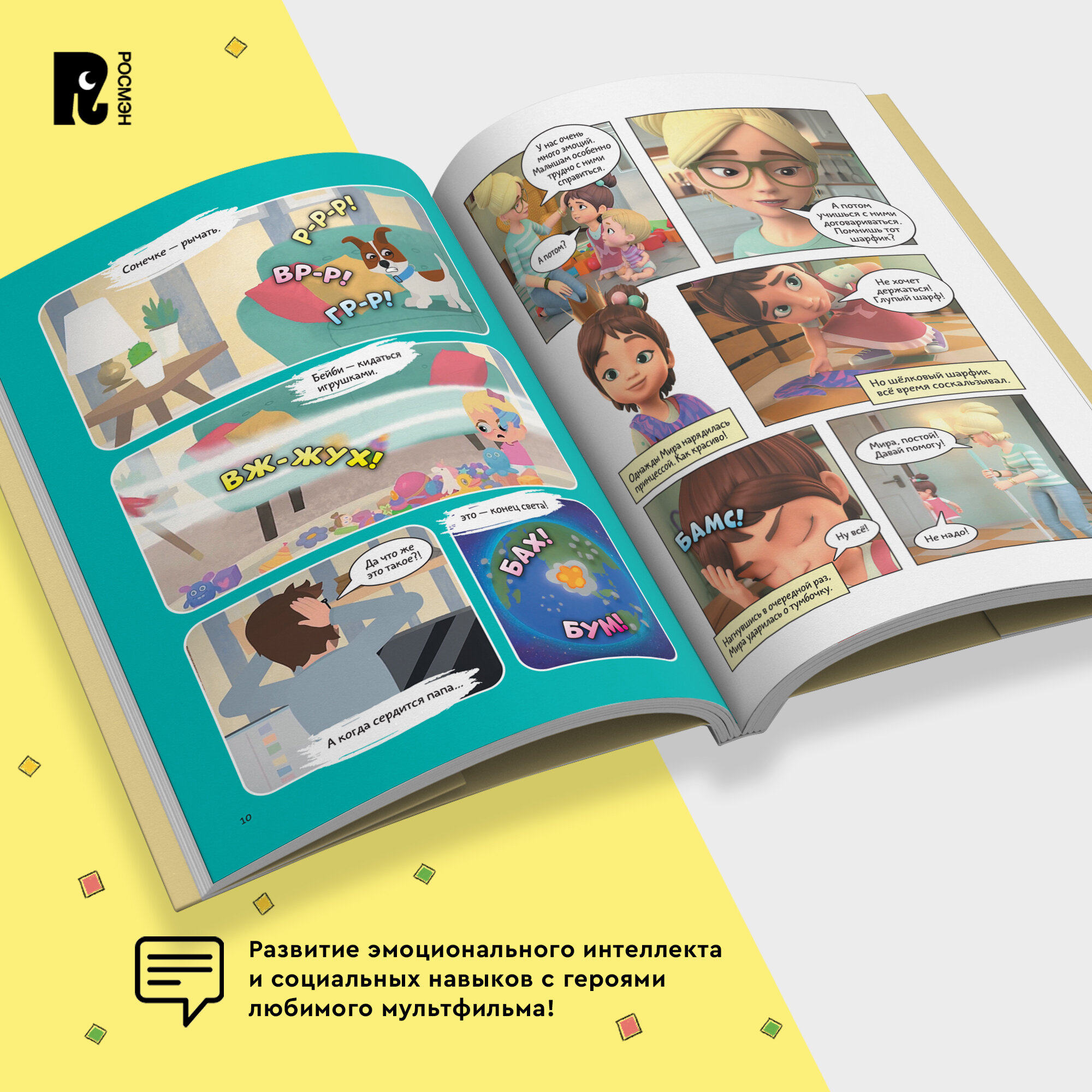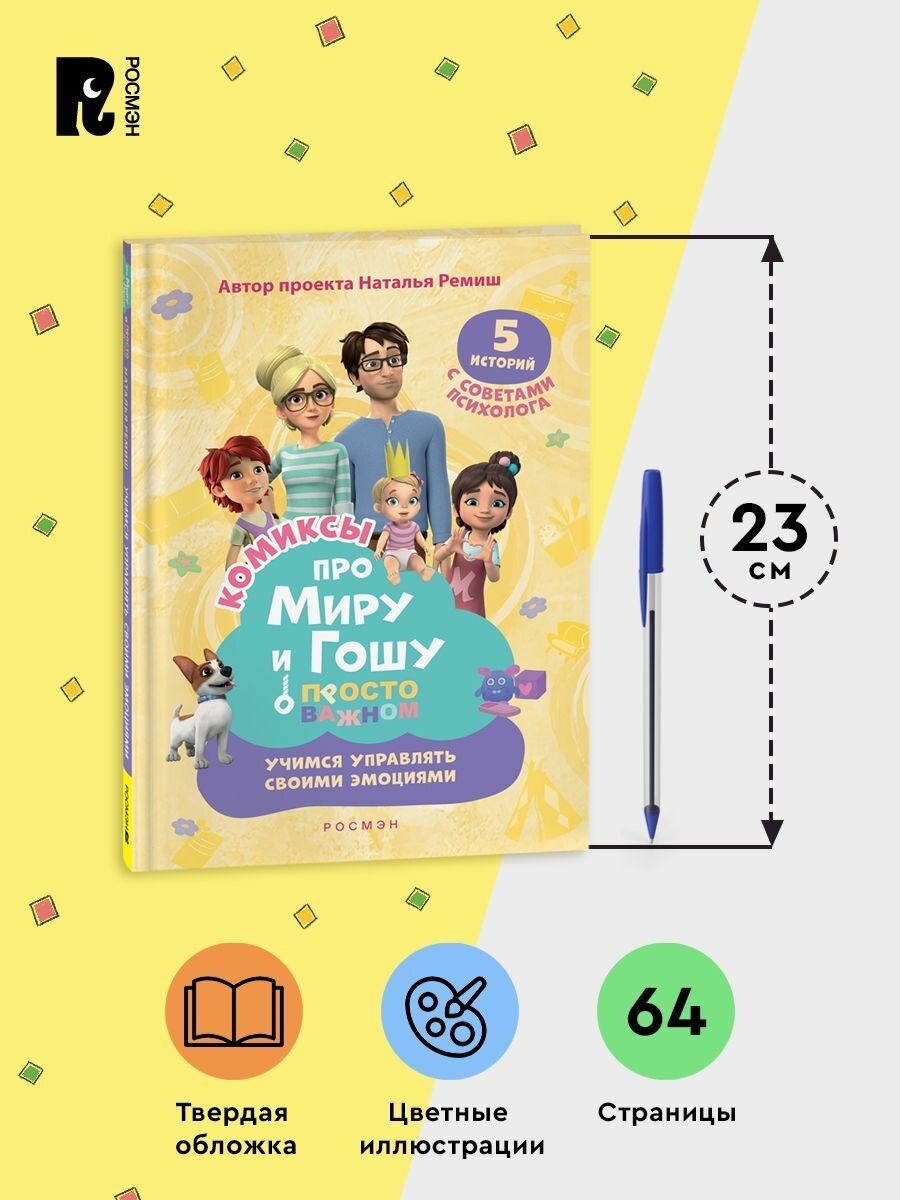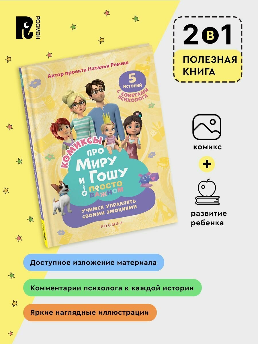 Любимый мультсериал — теперь в формате комиксов! Как и все дети, брат и сестра Гоша и Мира познают мир, играют, иногда ссорятся и попадают в трудные ситуации: дома, в школе или во дворе. Что делать, если тебя обижают? Как справиться со злостью? Почему плакать — совсем не стыдно? Как научиться общаться и завести новых друзей? На эти и другие важные вопросы Мире и Гоше помогают ответить мама и папа. А комментарии психолога к каждой истории помогут вам вместе с ребенком разобрать проблему, проговорить важные моменты и обсудить, как действовать в сложной ситуации.