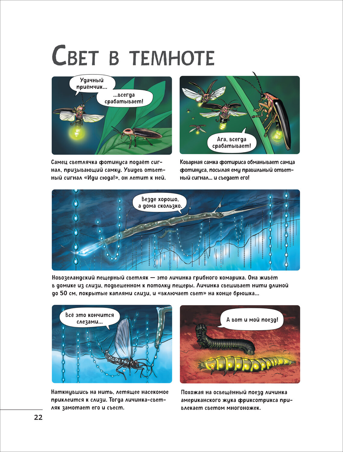 Рядом с нами обитают миллионы насекомых, пауков, тихоходок и других загадочных существ, которые являются настоящими хозяевами нашей планеты. Но много ли мы о них знаем? Эта книга расскажет об удивительных приспособлениях насекомых, паукообразных и их родственников, а также об их инженерных навыках, секретном оружии, поведении и, конечно же, о том, кто из них помогает людям, а кто — вредит. Захватывающее повествование проиллюстрировано уникальными микрофотографями и веселыми рисунками.