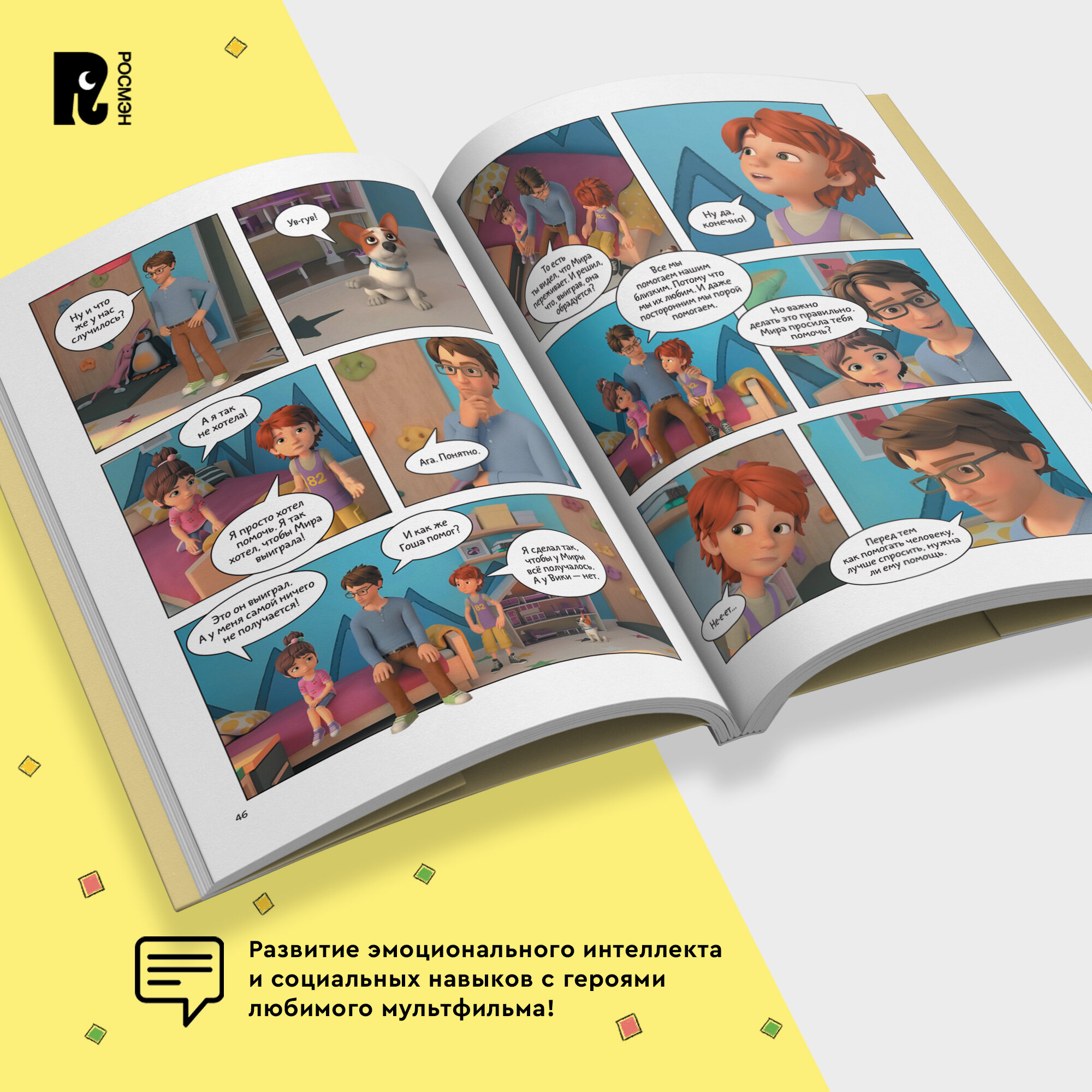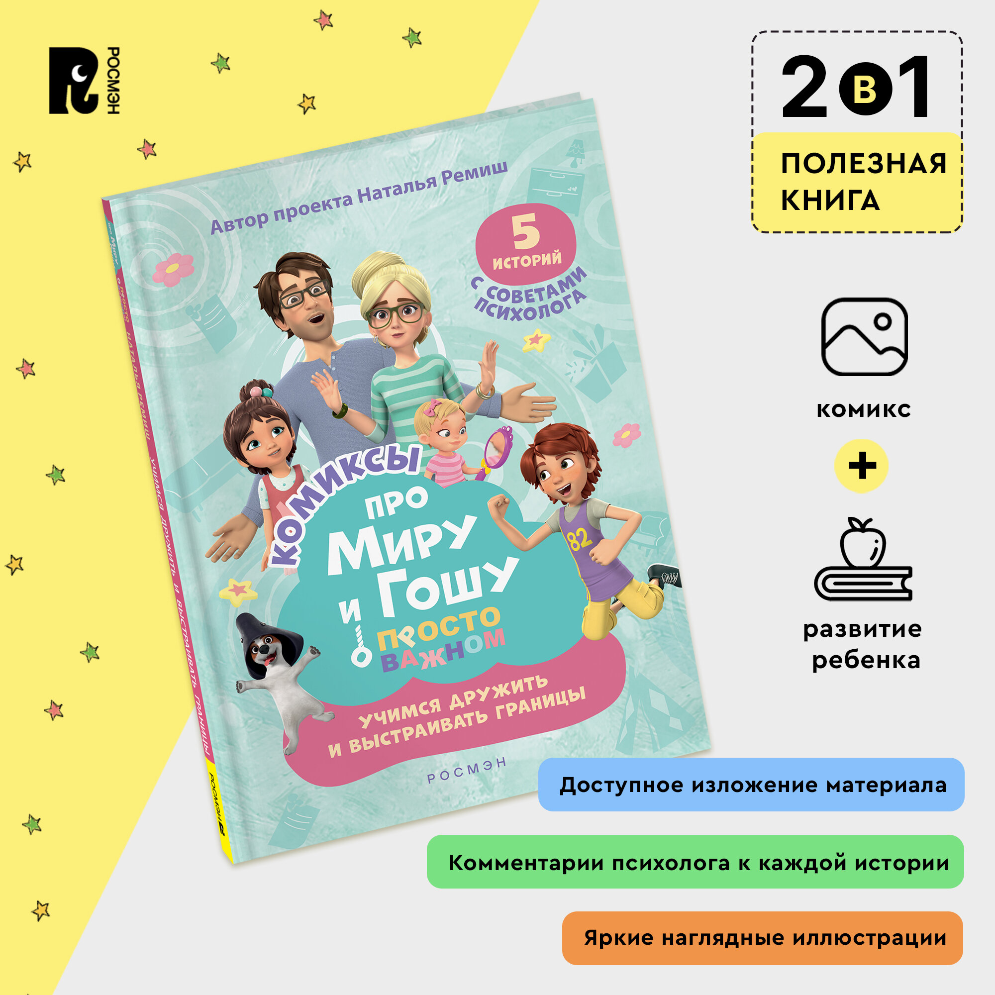 Любимый мультсериал — теперь в формате комиксов! Как и все дети, брат и сестра Гоша и Мира познают мир, играют, иногда ссорятся и попадают в трудные ситуации: дома, в школе или во дворе. Что делать, если тебя обижают? Как справиться со злостью? Почему плакать — совсем не стыдно? Как научиться общаться и завести новых друзей? На эти и другие важные вопросы Мире и Гоше помогают ответить мама и папа. А комментарии психолога к каждой истории помогут вам вместе с ребенком разобрать проблему, проговорить важные моменты и обсудить, как действовать в сложной ситуации.