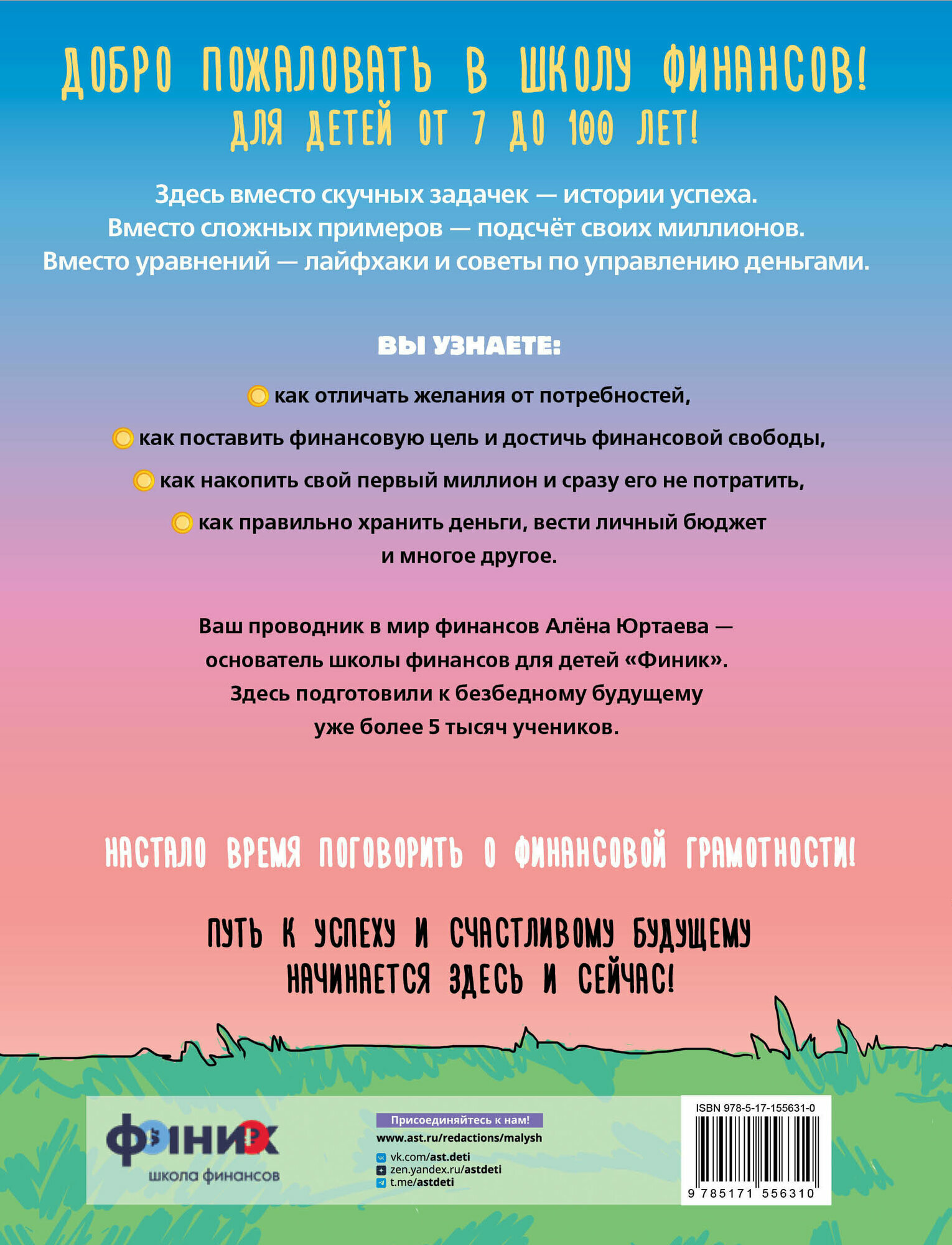 Мечтаешь накопить на новый телефон? Посматриваешь на новые кроссы? Или корзины интернет-магазинов уже показывают шестизначные суммы? Твои мечты могут стать реальностью! «Финик» — это не просто школа. Учителя здесь расскажут, как делать и тратить деньги, ставить цели и добиваться их. Здесь знают, как стать богатым. И этим знанием они решили поделиться в этой книге. Она станет твоим путеводителем в мир финансовой грамотности.