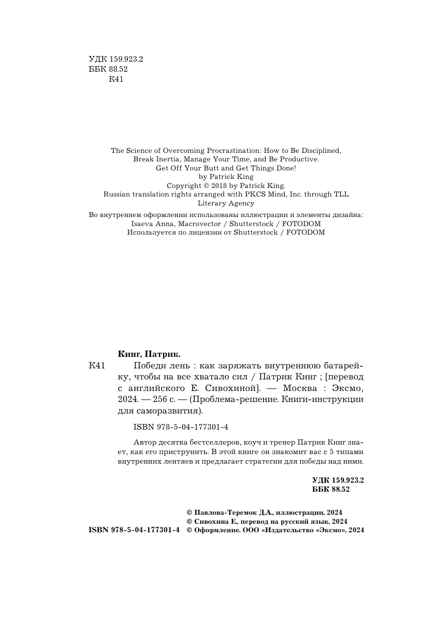 Победи лень. Как заряжать внутреннюю батарейку чтобы на все хватало сил (Кинг Патрик); ООО "Издательство "Эксмо", 2024