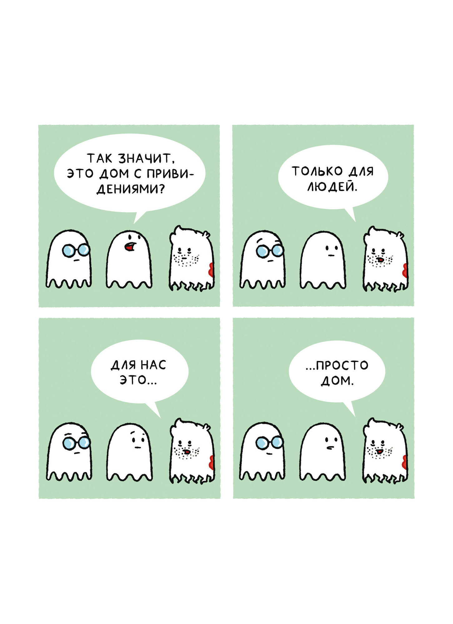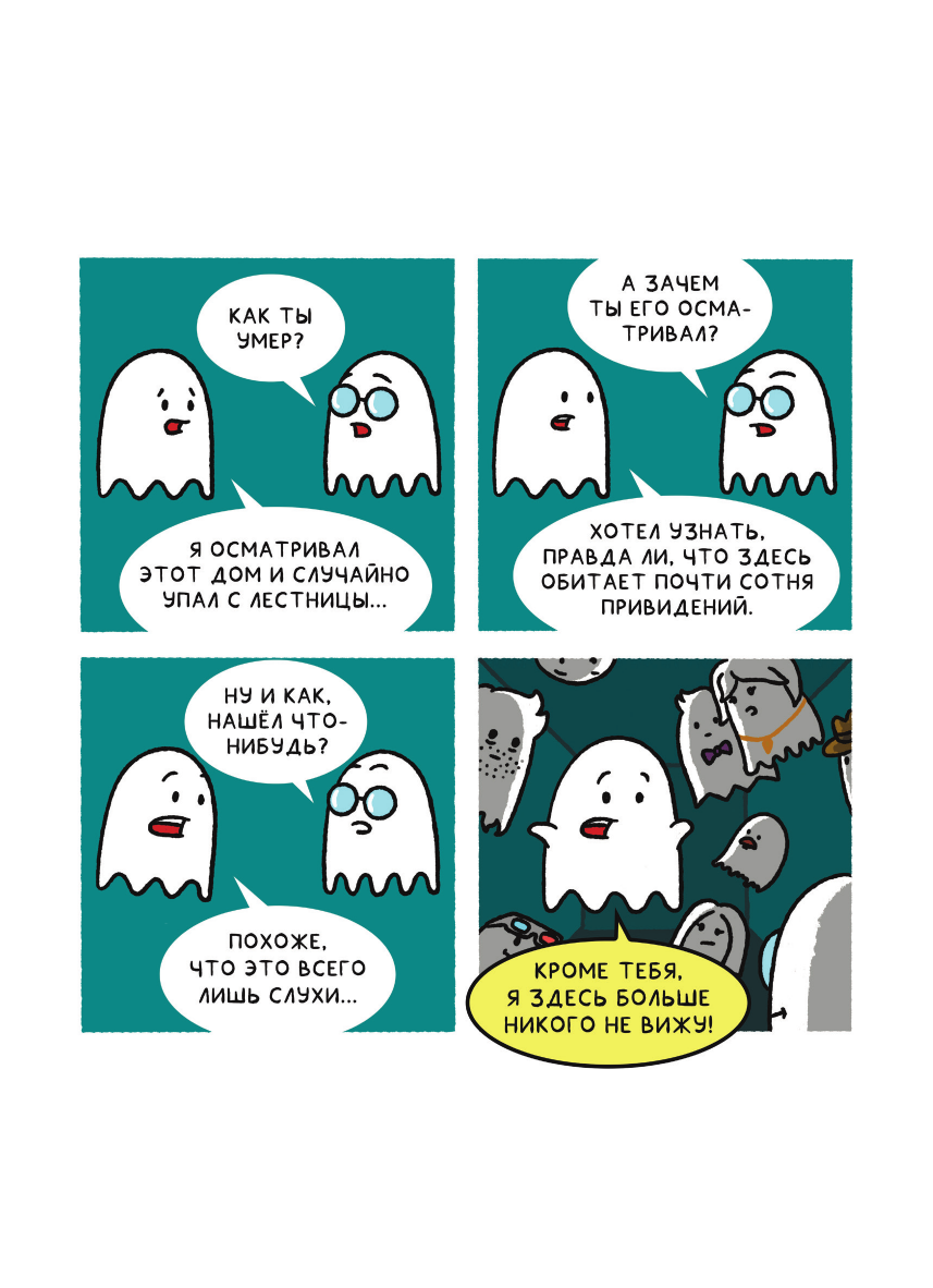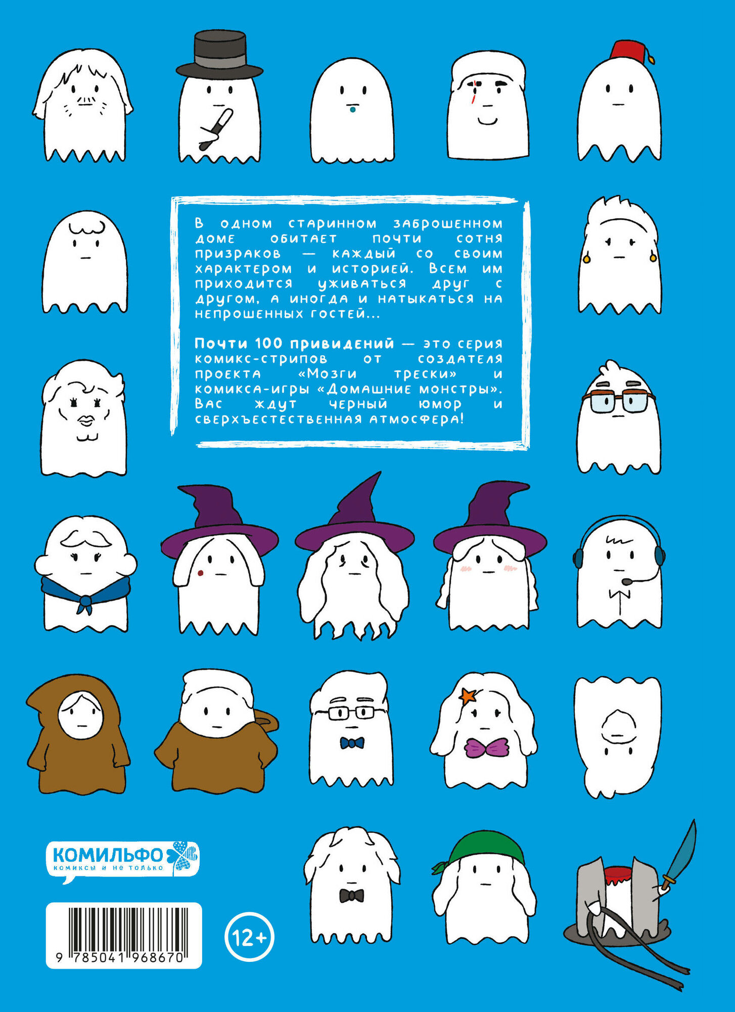 «Почти 100 привидений» — это серия комикс-стрипов от создателя проектов «Мозги трески» и «Смешные картинки» (с суммарной аудиторией более 150 000 человек) и увлекательной комикс-игры «Домашние монстры».