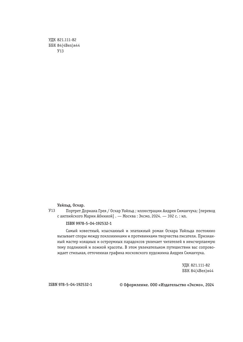 Портрет Дориана Грея (ил. А. Симанчука) (Уайльд Оскар); ООО "Издательство "Эксмо", 2024