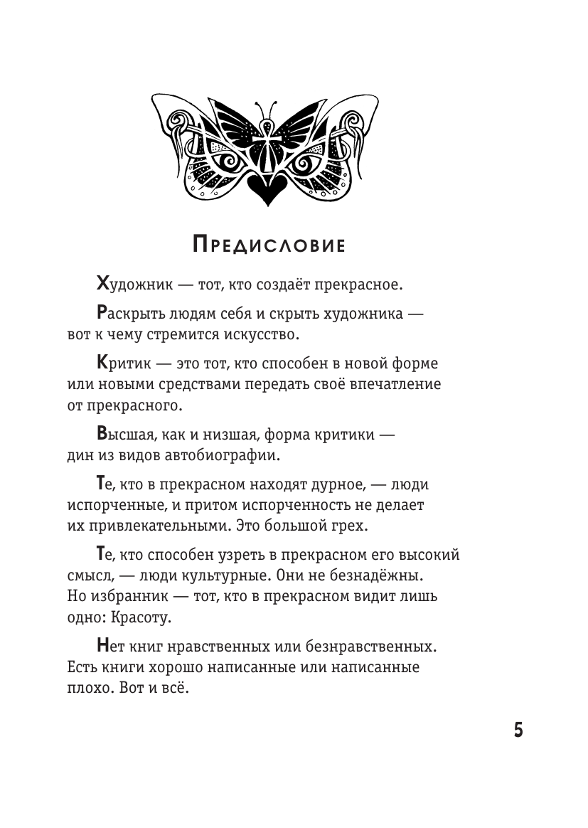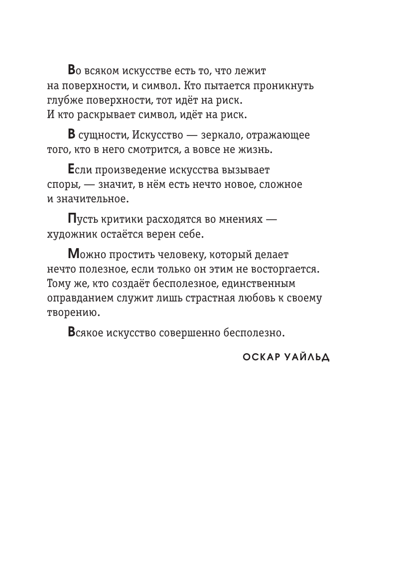 Самый известный, изысканный и эпатажный роман Оскара Уайльда постоянно вызывает споры между поклонниками и противниками творчества писателя. Признанный мастер изящных и остроумных парадоксов увлекает читателей в неисчерпаемую тему подлинной и ложной красоты. В этом увлекательном путешествии вас сопровождает стильная, отточенная графика московского художника Андрея Симанчука.