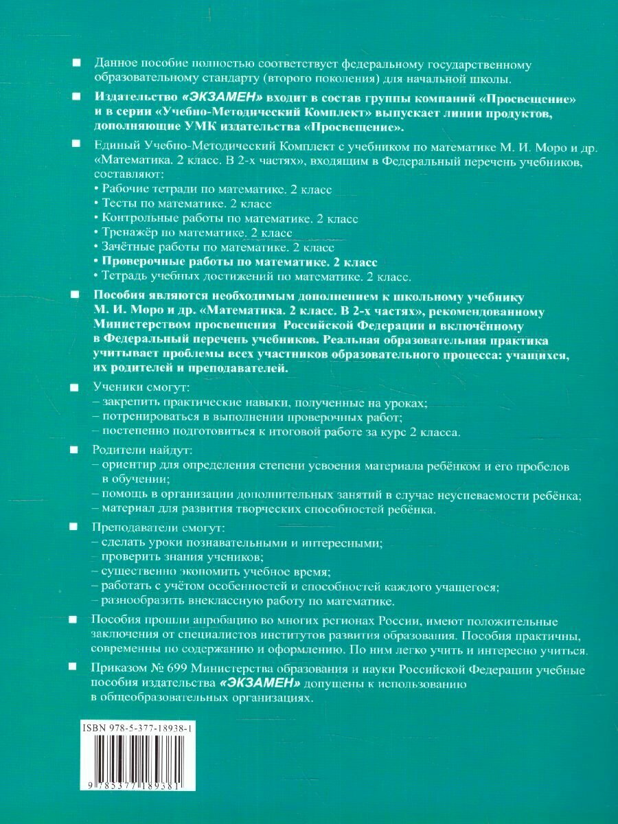 Сервис сравнения цен СкидкаГИД предлагает сравнить цены на товар «Книга: Проверочные работы по математике. 2 класс. К учебнику М.И. Моро и др. "Математика. 2 класс. В 2-х частях" (Трофимова Елена Викторовна); Экзамен, 2024»