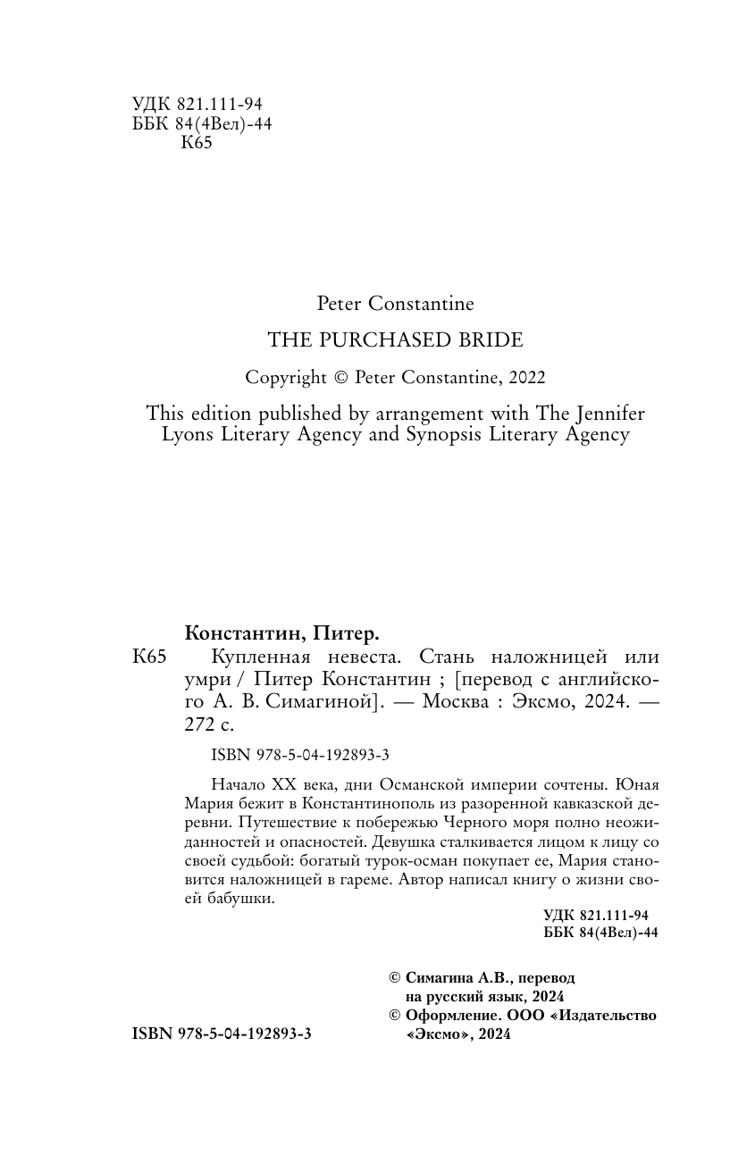 Купленная невеста. Стань наложницей или умри (Константин Питер); ООО "Издательство "Эксмо", 2024