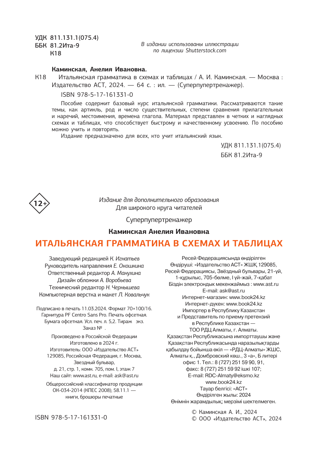 Итальянская грамматика в схемах и таблицах (Каминская Анелия Ивановна); ООО "Издательство Астрель", 2024