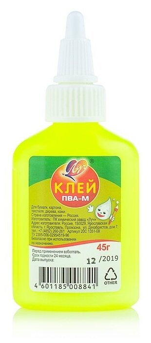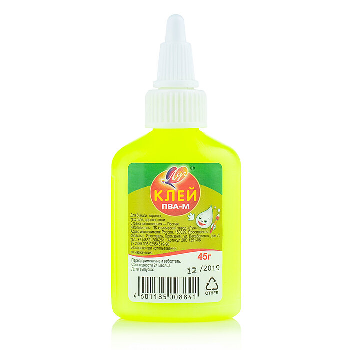 Клей Луч ПВА-М ориентирован на повседневные нужды широкого круга покупателей (учащихся, офисных работников). Предназначен для склеивания простых поверхностей (бумага, картон, кожа, ткань).