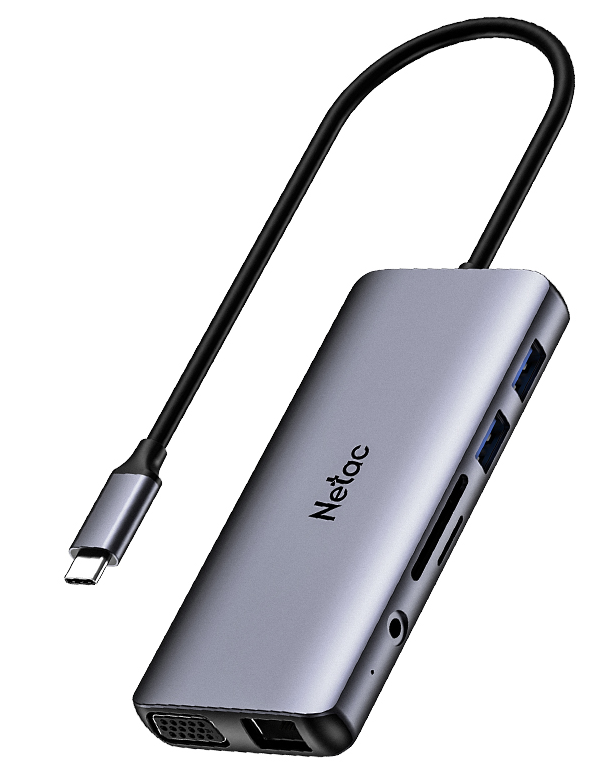 Разветвитель Netac 11 in 1 Type-C to USB3.0*2+USB2.0*2+HDMI+PD+mSD/SD 2.0+Audio+RJ45+VGA NT08WF15-30GR