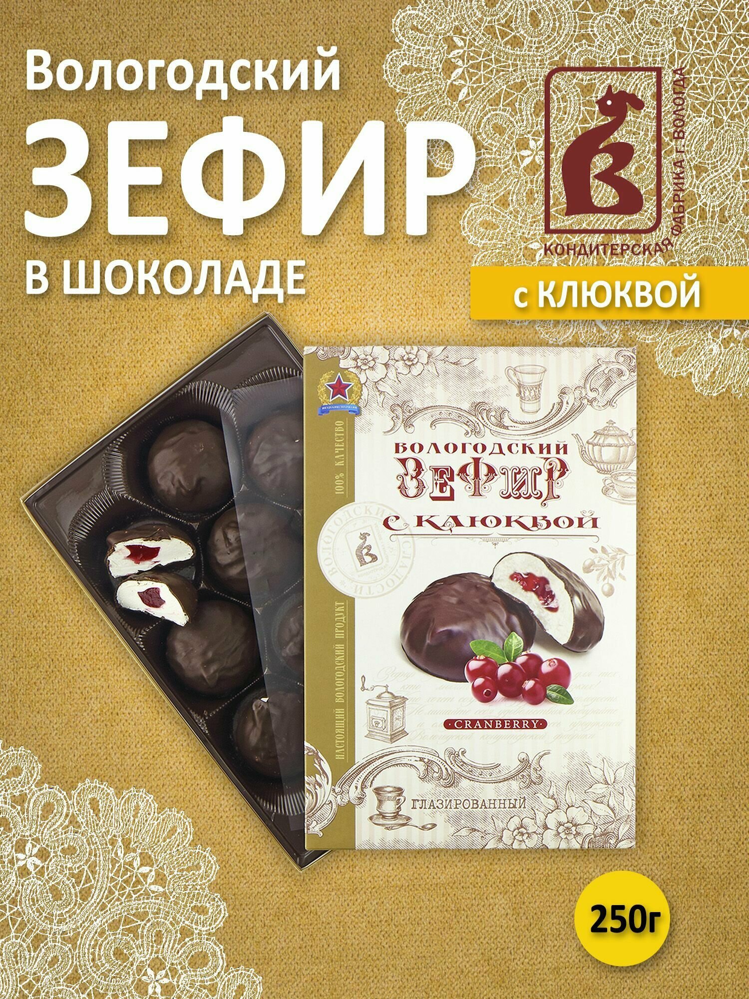 Сервис сравнения цен СкидкаГИД предлагает сравнить цены на товар «Зефир глазированный КФ Вологда с клюквой 250 г»