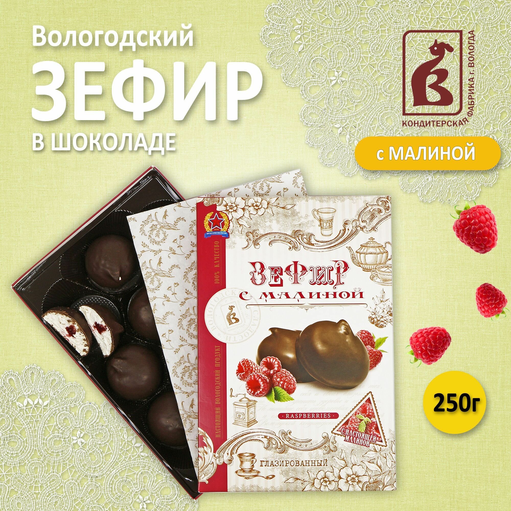 Зефир глазированный КФ Вологда с малиной 250 г