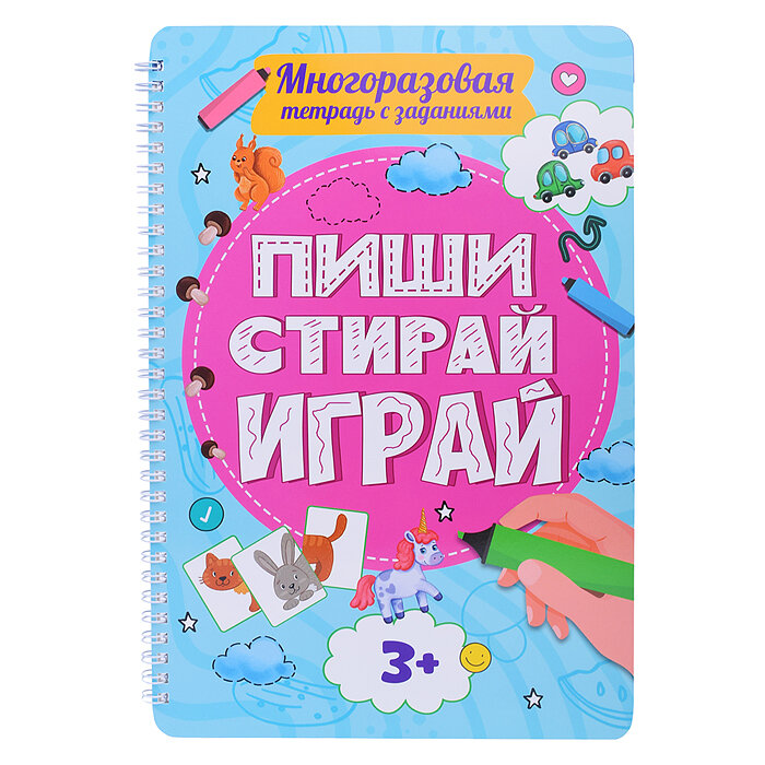 Многоразовая тетрадь "Пиши, стирай, играй!" является уникальным обучающим пособием, которое не только развивает навыки письма, но и стимулирует процесс обучения. Эта тетрадь, направленная на развитие ребёнка, станет незаменимым помощником при освоении разных тем. Для детей 3 лет разработаны интересные задания - лабиринты и находилки, благодаря которым легко выучить цвета и формы. Ребёнок научится правильно держать руку при рисовании, называть предметы и считать их, различать цвета и оттенки. Эта книга поможет в развитии внимания, логического мышления и усидчивости малыша. Также подготовит руку к письму. Книжка "Пиши, стирай, играй!" не только проста в использовании, но и содержит интересные задания, которые помогут детям развить творческое мышление и улучшить навыки письма. Вы найдёте развивающие игры на 30 страницах издания. Задания в тетради становятся сложнее по мере продвижения ребёнка вперёд, способствуя его умственному развитию. Кроме того, тетрадь также предлагает интерактивные игры, которые превращают учебный процесс в увлекательное путешествие. Дети могут играть в слова, составлять предложения из картинок и даже создавать свои собственные истории. Это отличная возможность учиться и развлекаться одновременно, что находит отклик в сердцах маленьких детей. Одно из достоинств этой многоразовой тетради является её экологичность. Теперь не нужно покупать одноразовые тетради, потому что написанные ответы можно стирать сколько угодно раз! Это важный фактор для детей, которые раньше боялись делать ошибки и испортить тетрадь. Теперь девочки и мальчики могут экспериментировать и изучать новые материалы без страха. Достаточно использовать чёрные или цветные маркеры, которые легко сотрутся с поверхности. Развивающая тетрадь "Пиши, стирай, играй!" — это игровое пособие, которое помогает развивать творческое мышление, улучшает письменные навыки и превращает учебный процесс в увлекательное приключение. Она станет отличным выбором для родителей, которые желают сделать досуг своих детей увлекательным и разнообразным. У тетради плотные ламинированные страницы с закруглёнными углами, которые безопасны для ребёнка и собраны на гребень. Большой формат тетради (А4) позволит подробно рассмотреть красочные иллюстрации на листах. Многоразовый блокнот с заданиями это отличный подарок для детей дошкольного возраста. Серия «Пиши, стирай, играй!» разработана для малышей от 3 до 6 лет. Ручка-стиральщик или маркер в комплект не входит.