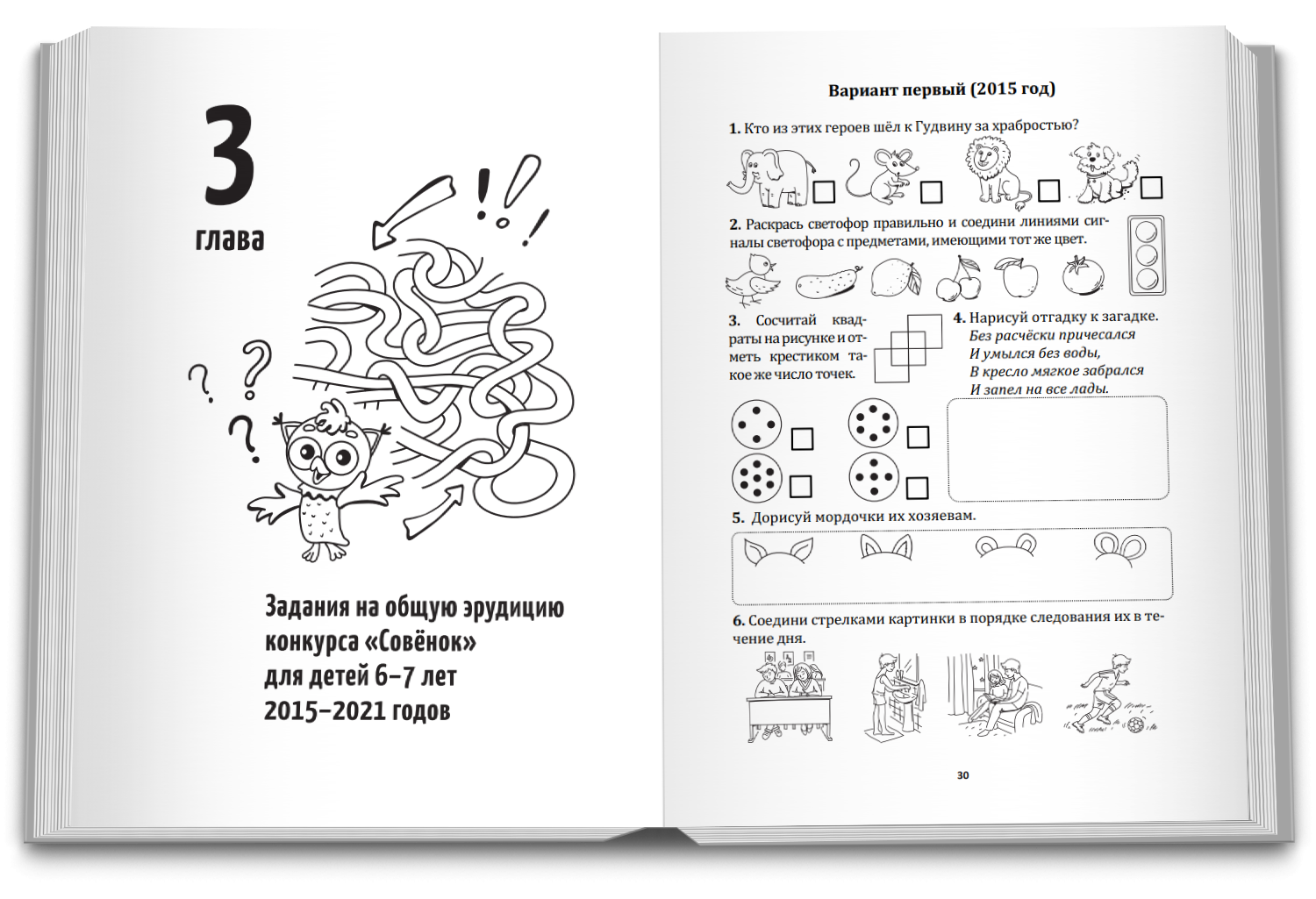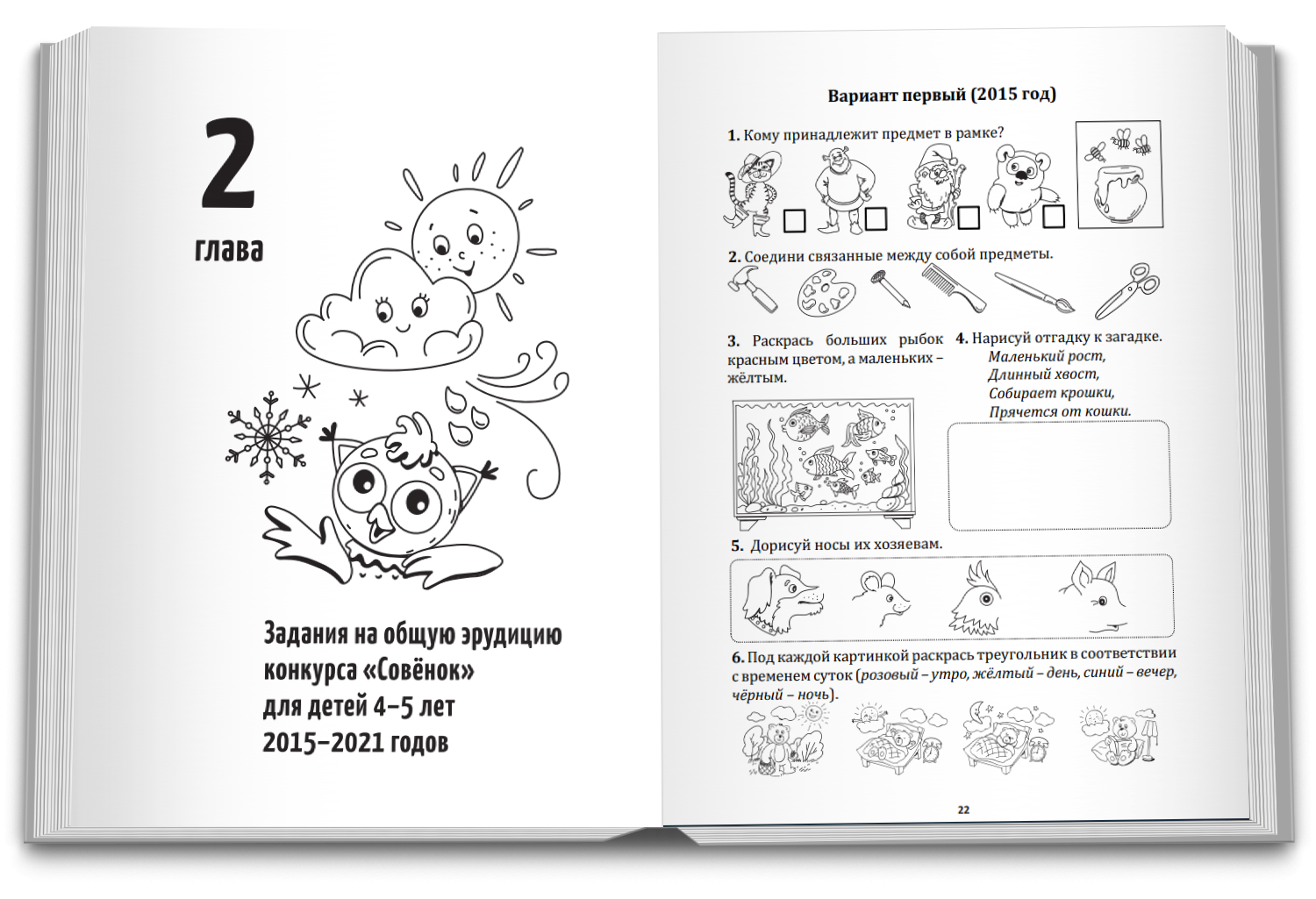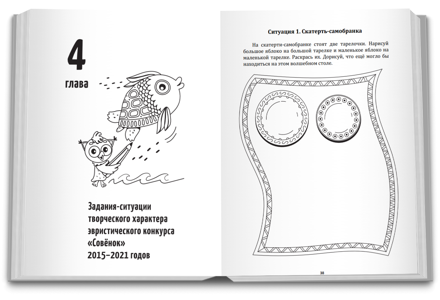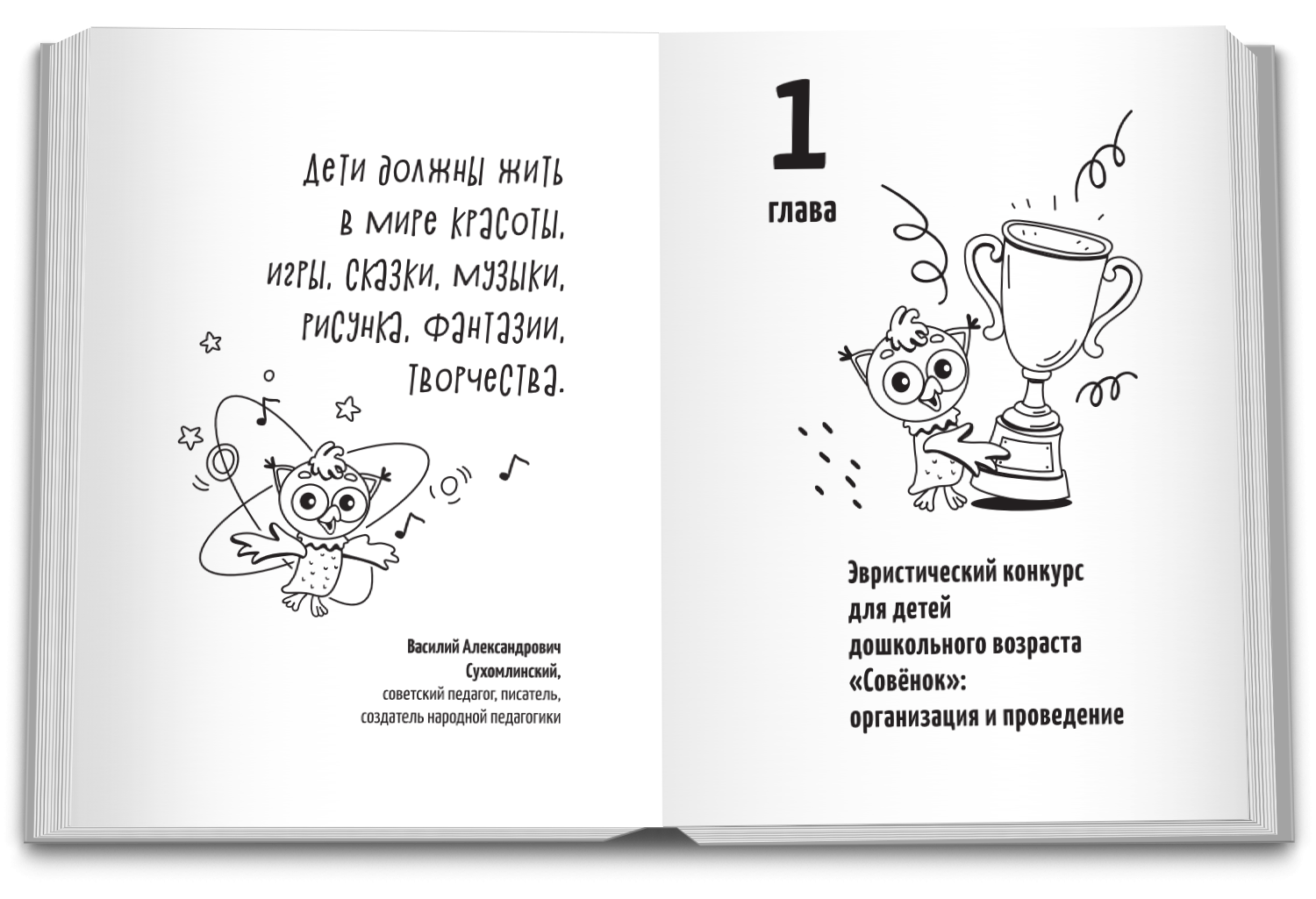 Эту книгу мы назвали "Первые встречи с Совёнком" совсем не случайно. Она написана для дошкольников и их наставников и приотворяет дверь в огромный увлекательный мир научного творчества, который наш авторский коллектив уже на протяжении 15 лет описывает через систему задач открытого типа в пособиях серии "Совёнок". Именно с этой книги мы рекомендуем начать знакомство детей 4-7 лет с нашими идеями. Конкурс, о котором идёт речь в пособии, носит название эвристический. Вспомните Архимеда, выскочившего из ванны, воскликнув: "Эврика!" (что дословно значит "нашёл!"). Эти поисковые задачи предполагают при их решении использовать красивые и нестандартные подходы к поиску новых идей, не выходя за границы привычных предметных знаний детей. Такие задания (глава 4) выглядят необычно: в них изначально заложена высокая доля неопределённости, позволяющая предположить целый спектр приемлемых решений для задачи-ситуации творческого характера.