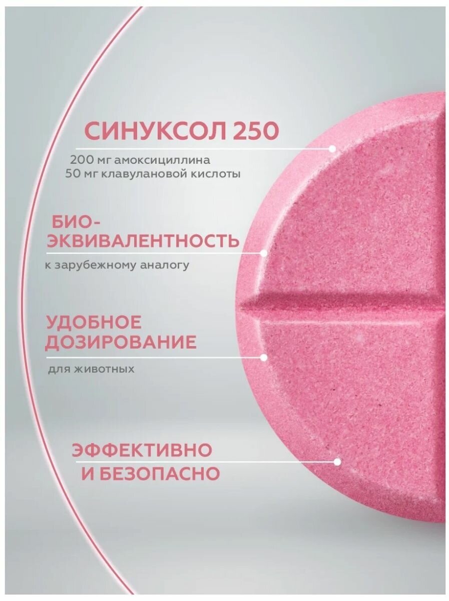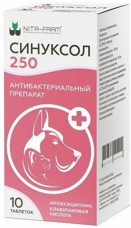 Nita-farm СИНУКСОЛ-НИТА антибактериальный препарат для кошек и собак 250мг 10 таблеток