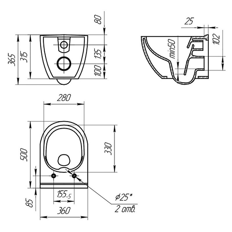 | Высота унитаза | 365.000 |