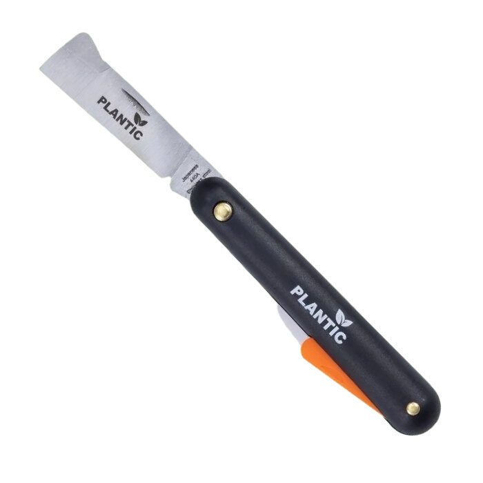 Нож для прививок Plantic подходит для прививки, подрезки, подрезания и подравнивания кустарников и растений. Характеристики: Материал: нержавеющая сталь;Длина: 19,7 см;Ширина: 1,7 см;Масса: 50 г. Преимущества: Эргономичная рукоятка из материала FiberGlass (армированный стекловолокном полиамид) прочная и легкая.Выступ с закругленными краями для отгибания коры дерева.Лезвие из нержавеющей стали долго остается острым.