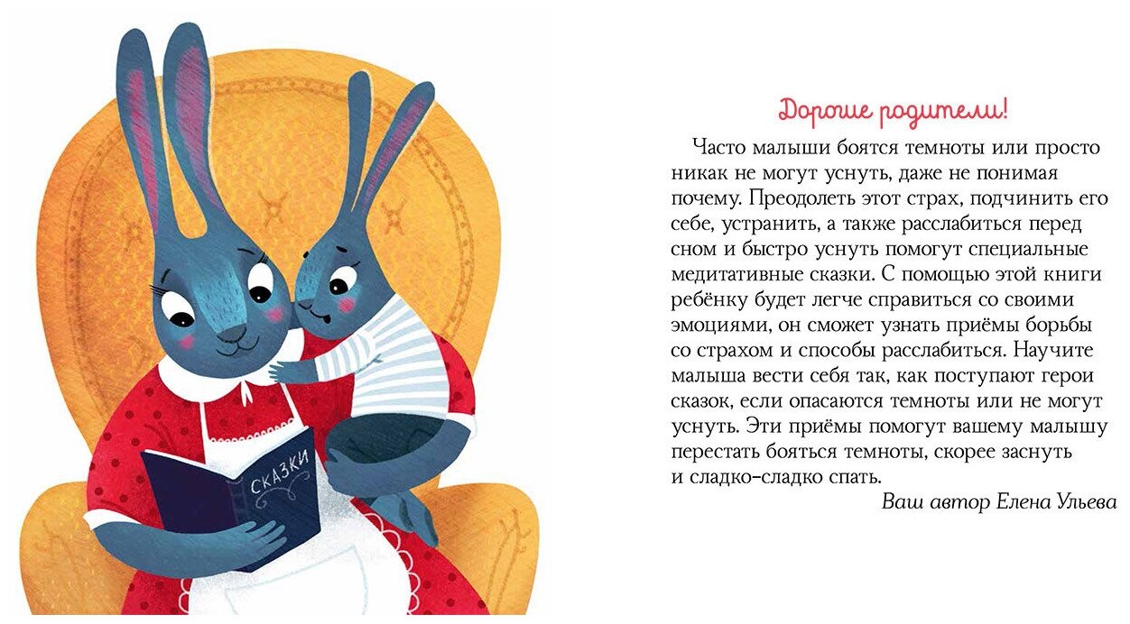 Книга «Сонные сказки» состоит из наших хитов — произведений, которые раньше публиковались в изданиях «Я не боюсь темноты» и «Спокойной ночи». Часто малыши боятся темноты или просто никак не могут уснуть, даже не понимая почему. Преодолеть этот страх, подчинить его себе, устранить, а также расслабиться перед сном и быстро уснуть поможет этот сборник. Сонные сказки, собранные в этой книге, основаны на медитативной практике и построены таким образом, что помогают ребенку ощутить безопасность и расслабиться. Научите малыша вести себя так, как поступают главные герои, если опасаются темноты или не могут уснуть. Эти приемы помогут вашему малышу перестать бояться темноты, скорее заснуть и сладко-сладко спать. В конце книги «Сонные сказки» даны упражнения для расслабления, а также способ победить даже самый сильный страх. Эти упражнения малыш с удовольствием проделает, чтобы помочь заснуть героям сказок и самому отправиться в волшебное царство сна. ВАЖНОЕ О КНИГЕ: 6 медитативных сказок. Учимся справляться с боязнью темноты. Расслабляемся перед сном, чтобы быстро уснуть. Популярный автор Елена Ульева. В сборник вошли произведения из ранее изданных книг «Я не боюсь темноты», «Спокойной ночи».