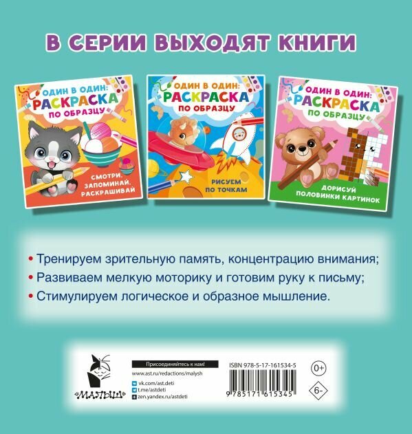 "Рисуем по клеточкам" — это красивые картинки-обводилки с цветными образцами для раскрашивания. Развивающая раскраска — чудесный подарок для малышей, которые учатся держать в руке карандаш. Предложите ребёнку копировать и дорисовывать картинки по клеточкам, обводить орнаменты и узоры — такие занятия тренируют мелкую моторику и координацию движений руки, развивают зрительное восприятие и внимание, воображение, творческие способности. Выполняя интересные упражнения, малыш научится правильно держать ручку и карандаш, проводить линии красиво и аккуратно, а цветные образцы подскажут, как раскрасить картинку. Рисовать по клеточкам и раскрашивать крупные картинки на плотной бумаге можно цветными карандашами, фломастерами, мелками.