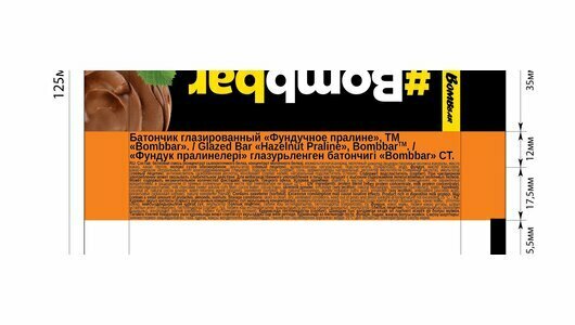 Батончик глазированный фундучное пралине Bombbar 40г Фитнес фуд ООО (2903548)
