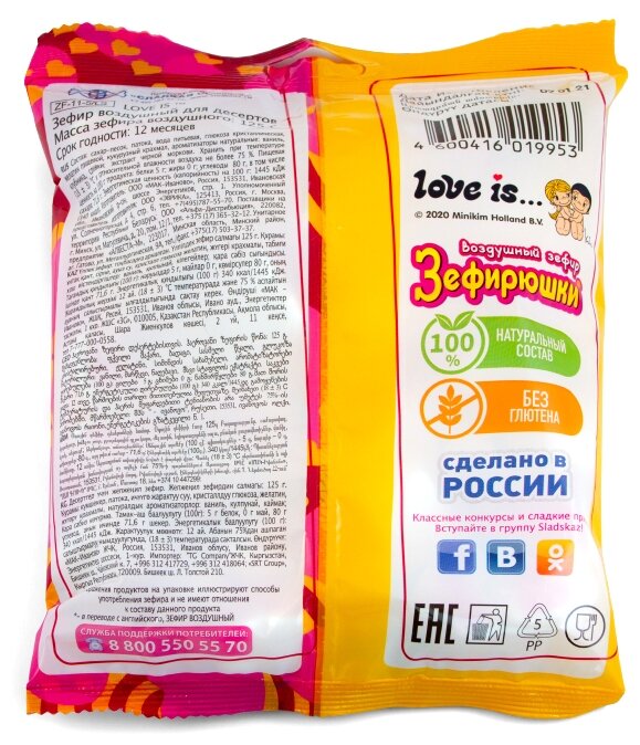 Зефир Зефирюшки "Love is..." для десертов сливочный клубника 125 г