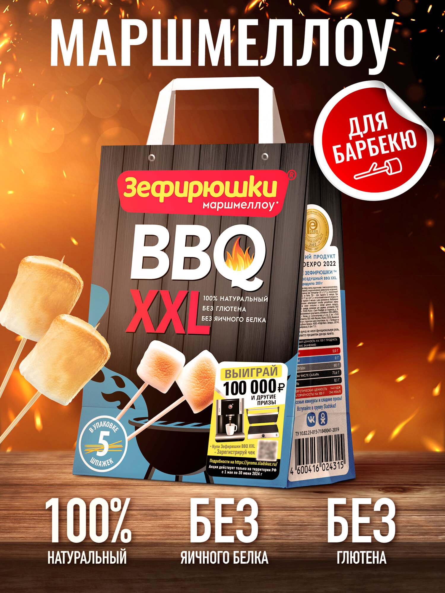 Лето - время для шашлыков. И не только из мяса и овощей. У детей особенной популярностью пользуются сладкие шашлыки из воздушного зефира, который они могут жарить на костре самостоятельно. Даже молодежь и взрослые всё чаще берут воздушный зефир с собой на пикники в парки и в туристические походы. Специально для больших компаний и семей ГК " Сладкая сказка" был разработан уникальный формат маршмеллоу - 200-граммовый пакет BBQ XXL. Сами кусочкиз ефирки маршмеллоу тоже стали больше, чем в стандартной упаковке. Зефир упакован в крафтовый пакет, на котором изображена шпажка с жареным зефиром и пылающий огонь. На боковины пакета нанесены графические инструкции, которые наглядно показывают, как правильно приготовить и употребить лакомство. Внутри пакета находятся 5 деревянных шпажек для жарки зефира и маршмеллоу в прозрачной упаковке, благодаря которой продукт остаётся свежим и мягким в течение всего срока годности. Открой сезон шашлыков с Воздушным зефиром BBQ.