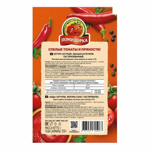 Острый кетчуп от бренда ПОМИДОРКА станет достойным вариантом дополнения различных блюд для тех, кто обожает обжигающий вкус. При изготовлении продукта используются отборные сочные томаты, прошедшие контроль на производстве, и жгучий перец. Острый кетчуп идеально подавать к крылышкам барбекю, колбаскам, приготовленным на гриле, стейкам и прочим мясным блюдам.