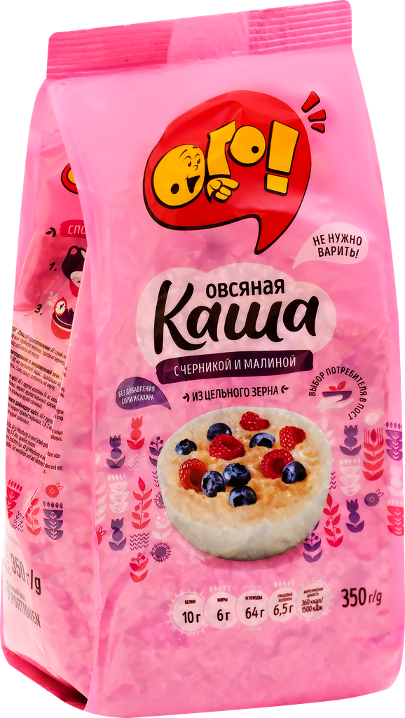 | Состав | Хлопья овсяные из цельного зерна, черника сушеная, кусочки сушеной малины, ароматизатор. |