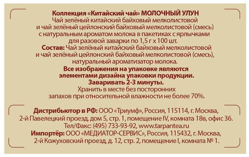 | Состав | Зелёный цейлонский чай, зелёный китайский чай молочный улун, натуральный ароматизатор молока |