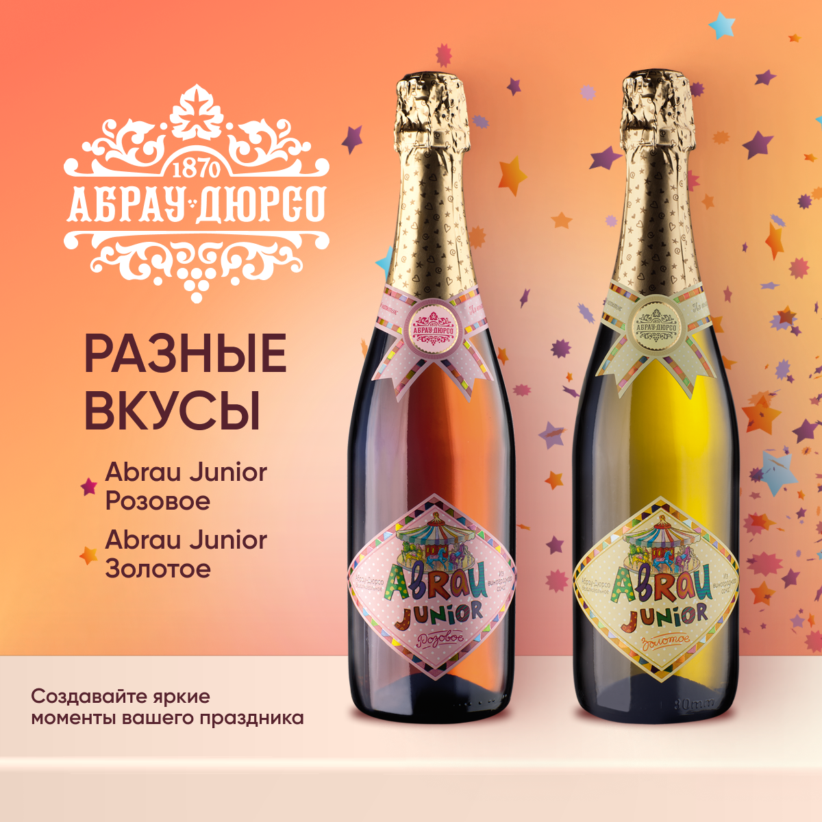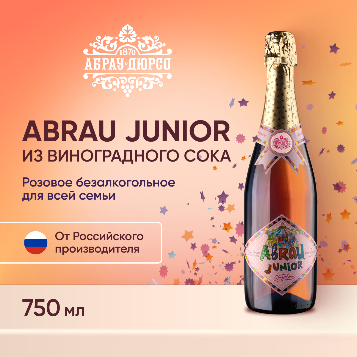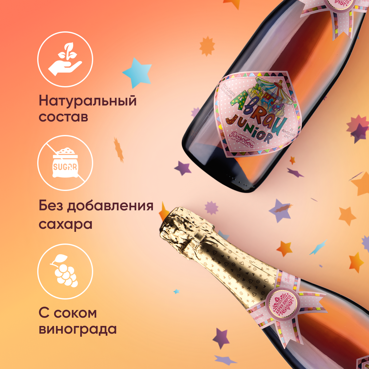 Детское шампанское, безалкогольный освежающий газированный напиток на основе белого и красного винограда. Со вкусом отборного винограда. Содержит более 30% натурального сока. Специально для веселых семейных праздников мы создали натуральный напиток с насыщенным виноградным ароматом. В этом лёгком напитке мы сохранили вкус лета и южного солнца с наших виноградников. Абрау Джуниор украсит любой праздник и порадует освежающим вкусом гостей торжества.