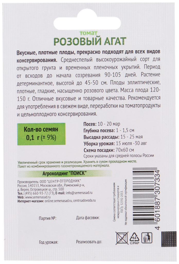 Семена Поиск Томат Розовый агат 01 г