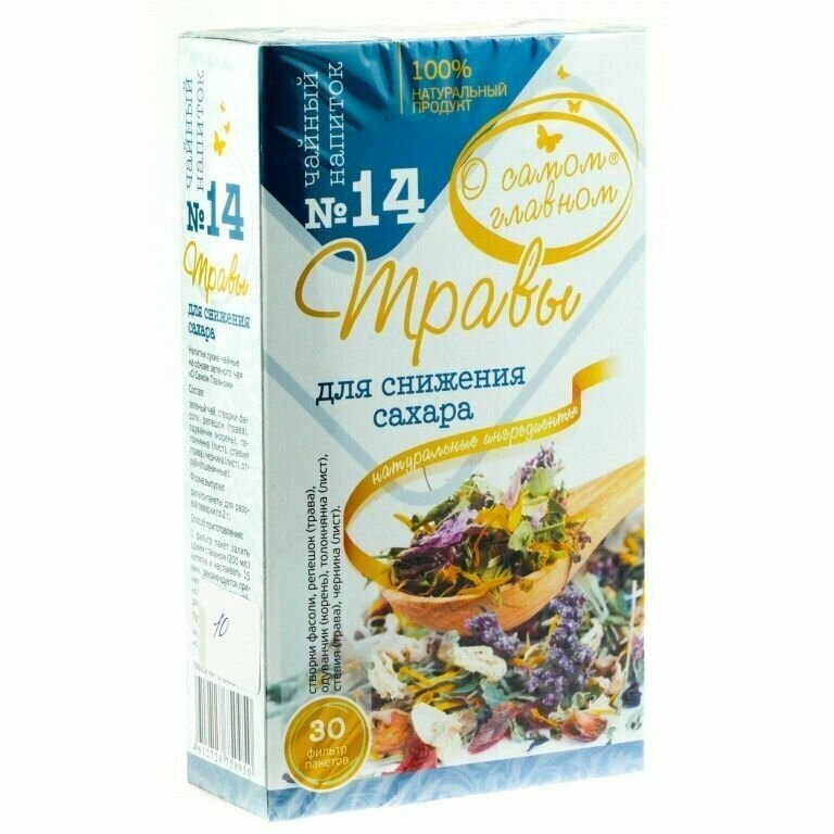 Чайный напиток О Самом Главном 14 Травы для Снижения Сахара 30 фильтр пакетов