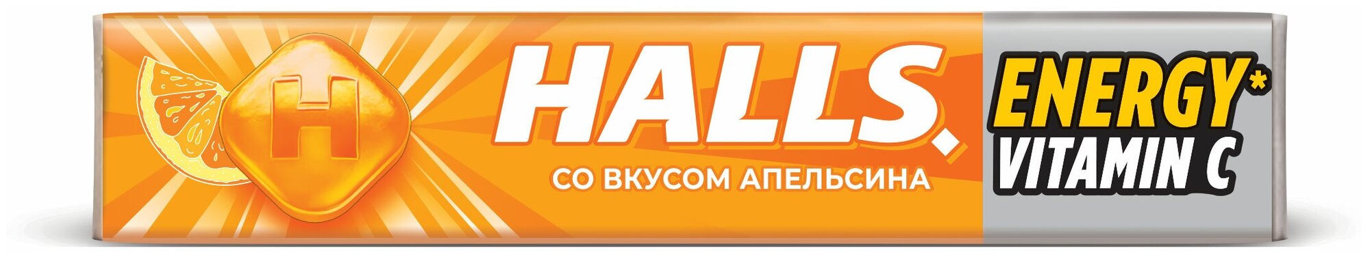 Освежающая конфета Halls со вкусом апельсина содержит 15% от рекомендуемого уровня суточного потребления витамина С в одном леденце.