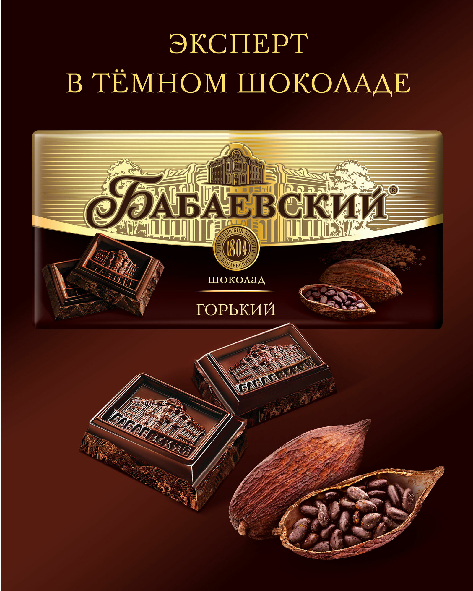 Классический горький шоколад концерна Бабаевский – гордость российской кондитерской отрасли. Тающая текстура, благородная горчинка, отборные ингредиенты и высокое содержание какао-продуктов (не меньше 55%!). Богатый вкус, каждая нотка которого раскрывается по-особому. Шоколад Бабаевский горький – лакомство для настоящих шоколадных гуру.