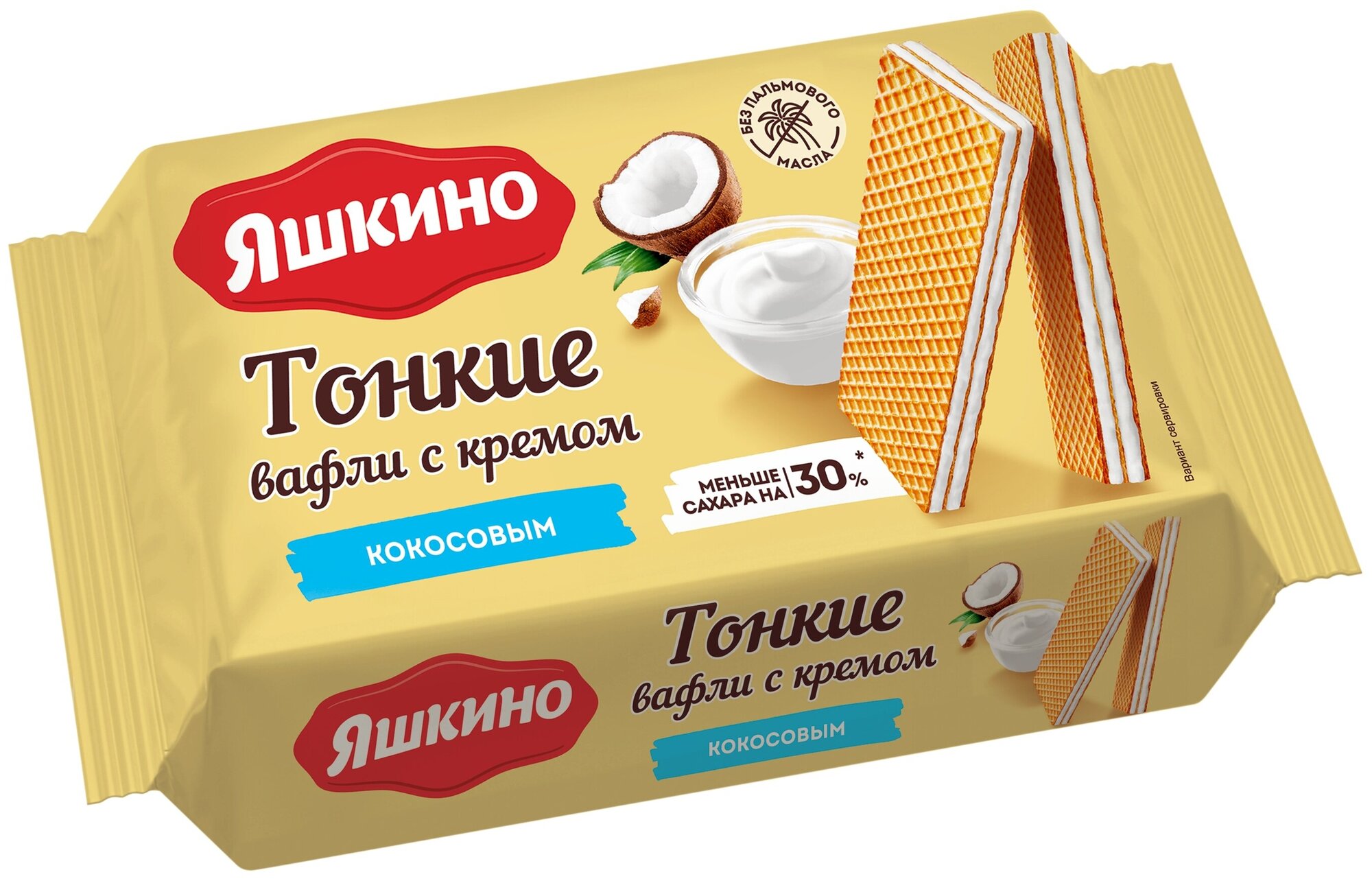 Вафли Яшкино тонкие с кокосовым кремом 144 г