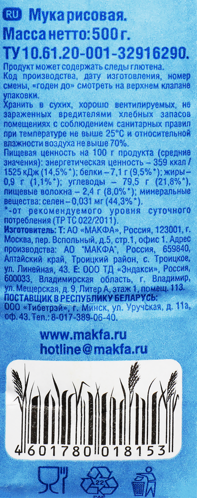 Мука MAKFA рисовая 500 г