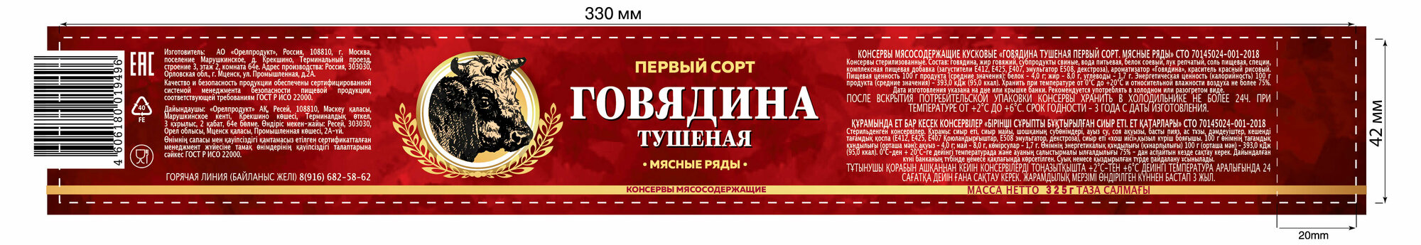 | Вид продукта | говядина |