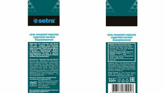 Настоящая морская соль Setra получена, как и сотни лет назад, старым естественным способом выпариванием морской воды на солнце. Такой способ добычи сохраняет первозданную форму и рыхлость кристаллов, полноту минерального состава и аромат моря. Дополнительно обогащенная йодом, эта соль является не только незаменимой приправой к блюдам, но и помогает заботиться о здоровье человека. Помол 0.