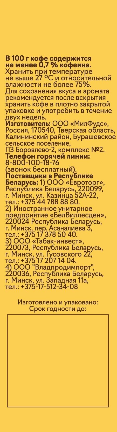 | Сорт кофе | смесь арабики и робусты |