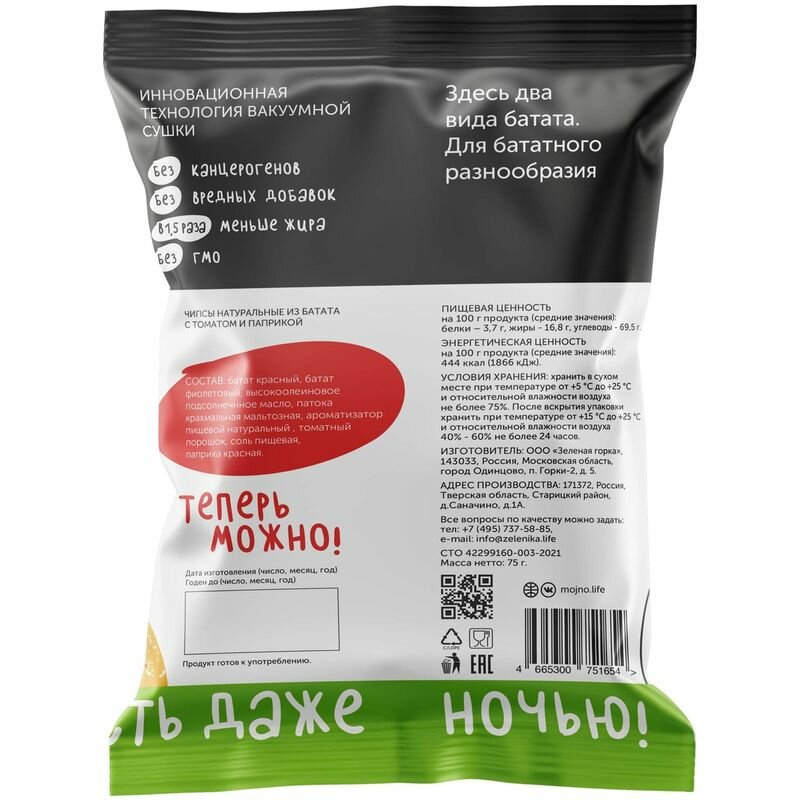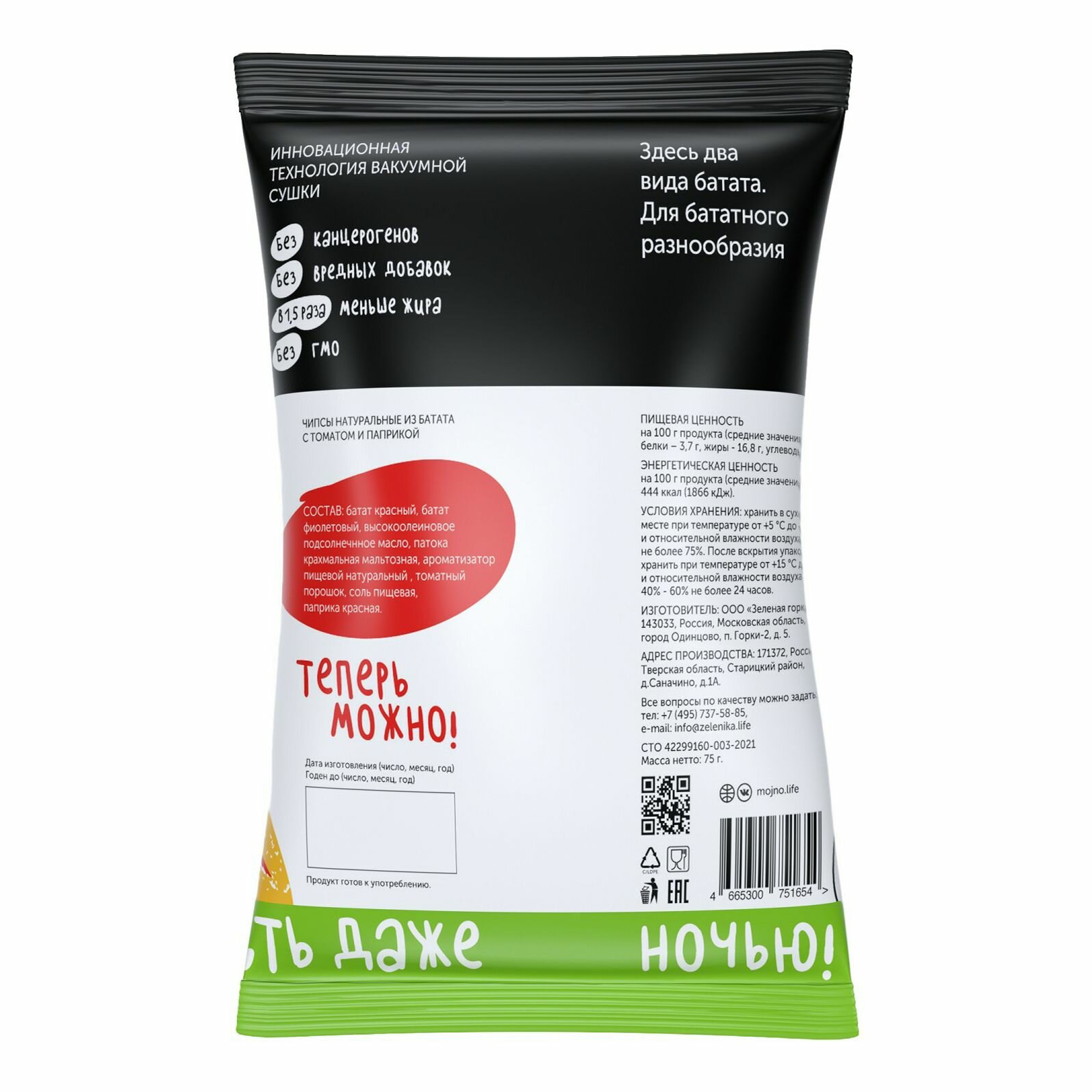 Чипсы натуральные Mojno из батата с томатом и паприкой 75 г