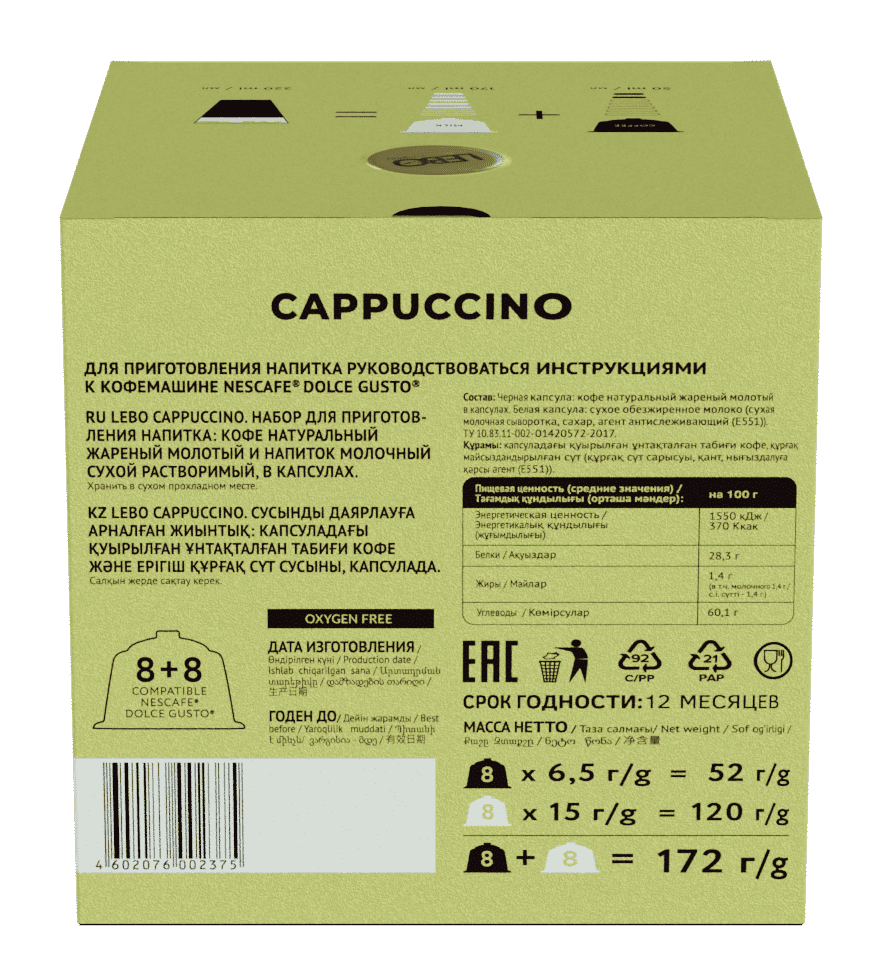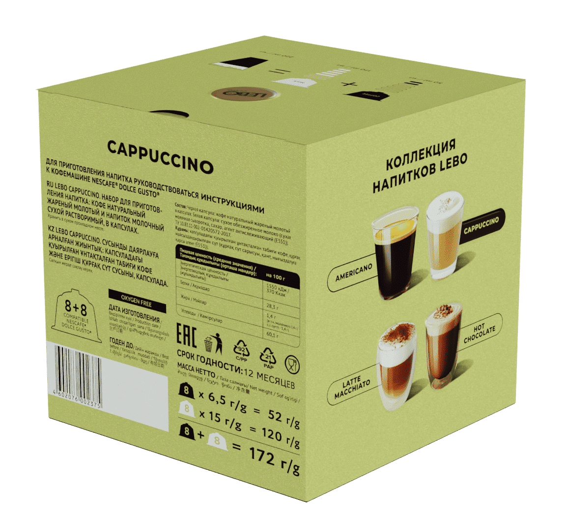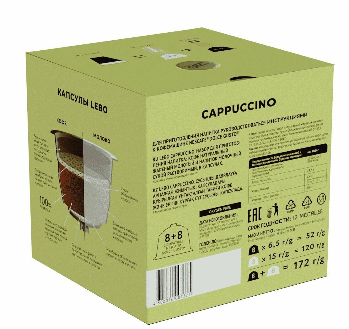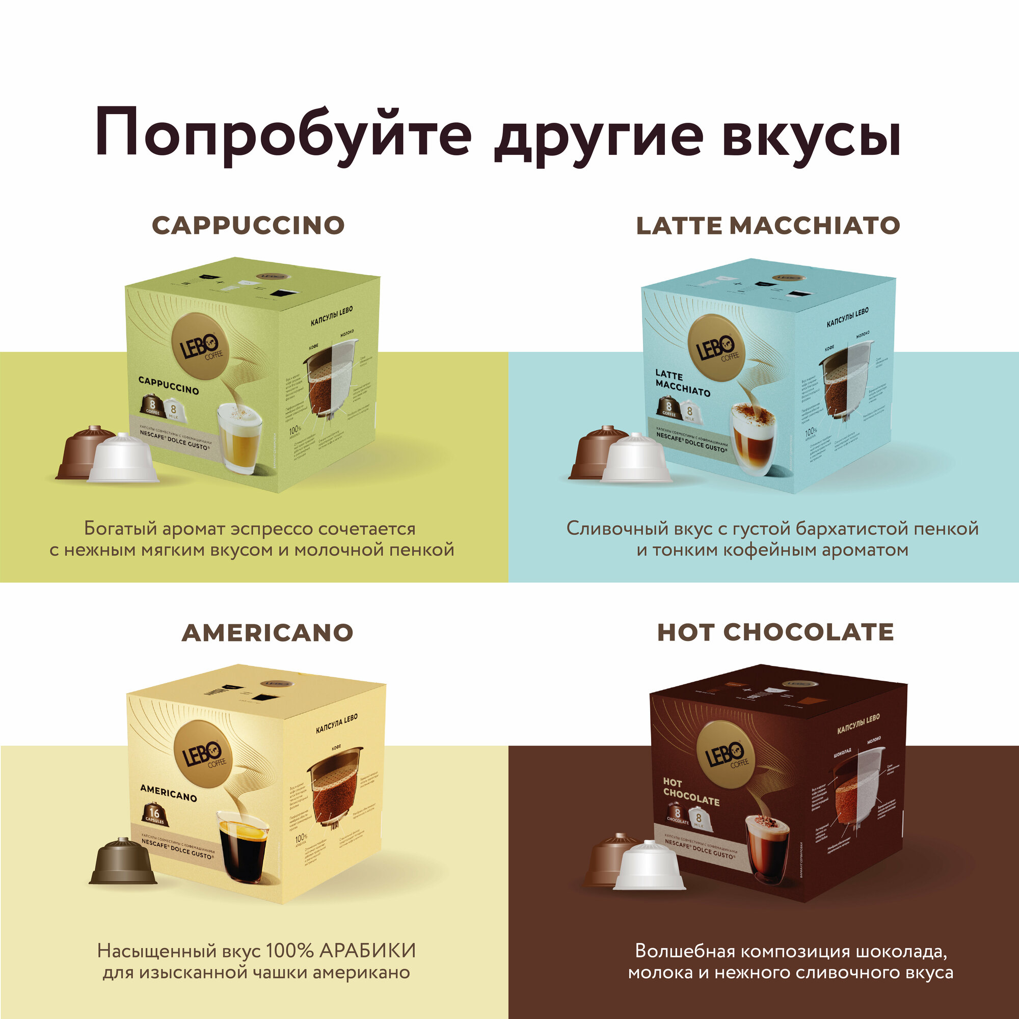 Сервис сравнения цен СкидкаГИД предлагает сравнить цены на товар «Кофе в капсулах Lebo Cappuccino 172 г»