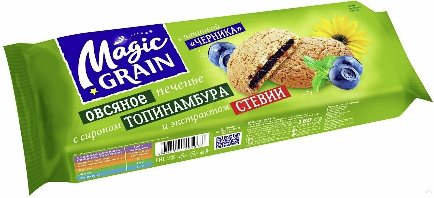 Печенье Magic Grain овсяное с черникой и сиропом топинамбура на стевии 180 гр