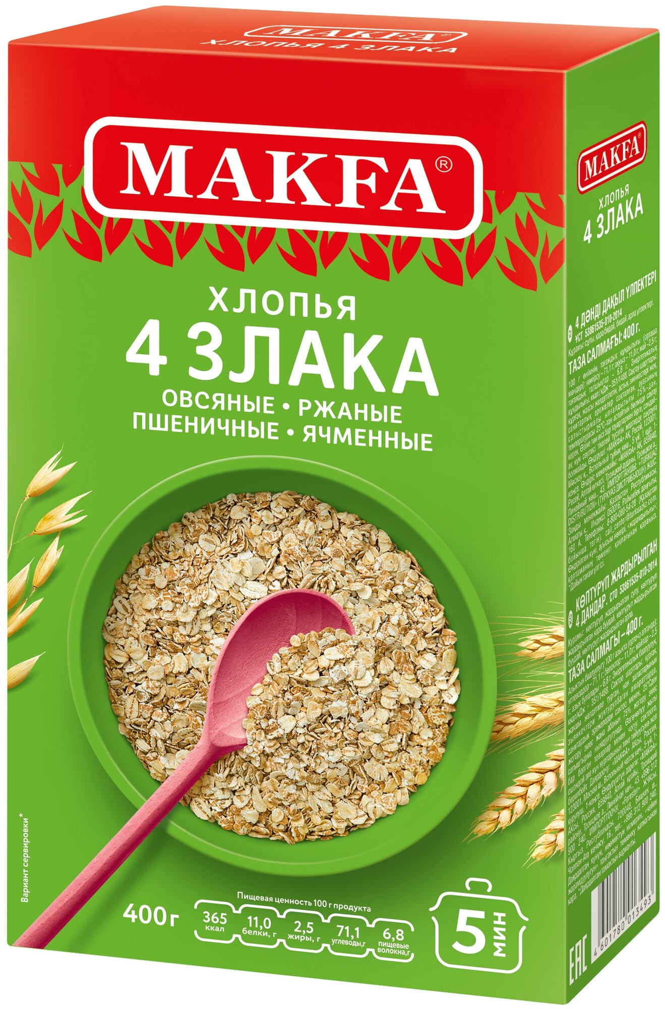 Сервис сравнения цен СкидкаГИД предлагает сравнить цены на товар «Хлопья злаковые Makfa 4 злака 400 г»